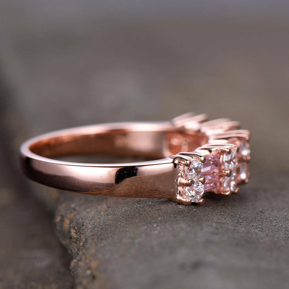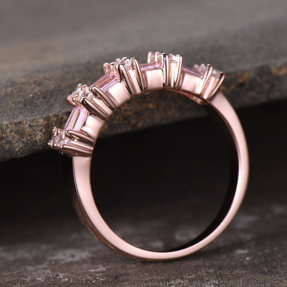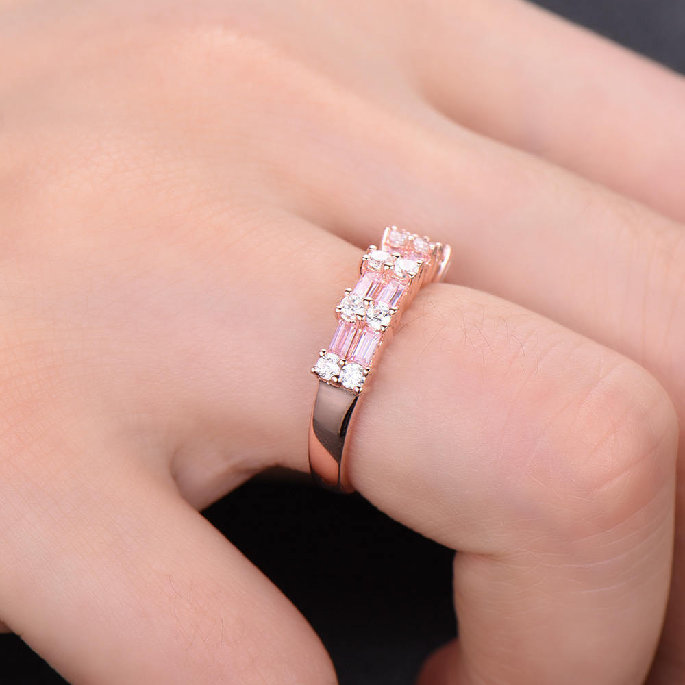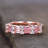 1ct Baguette Cut Pink Sapphire Fancy Design Engagement Ring 14k Rose Gold Finish