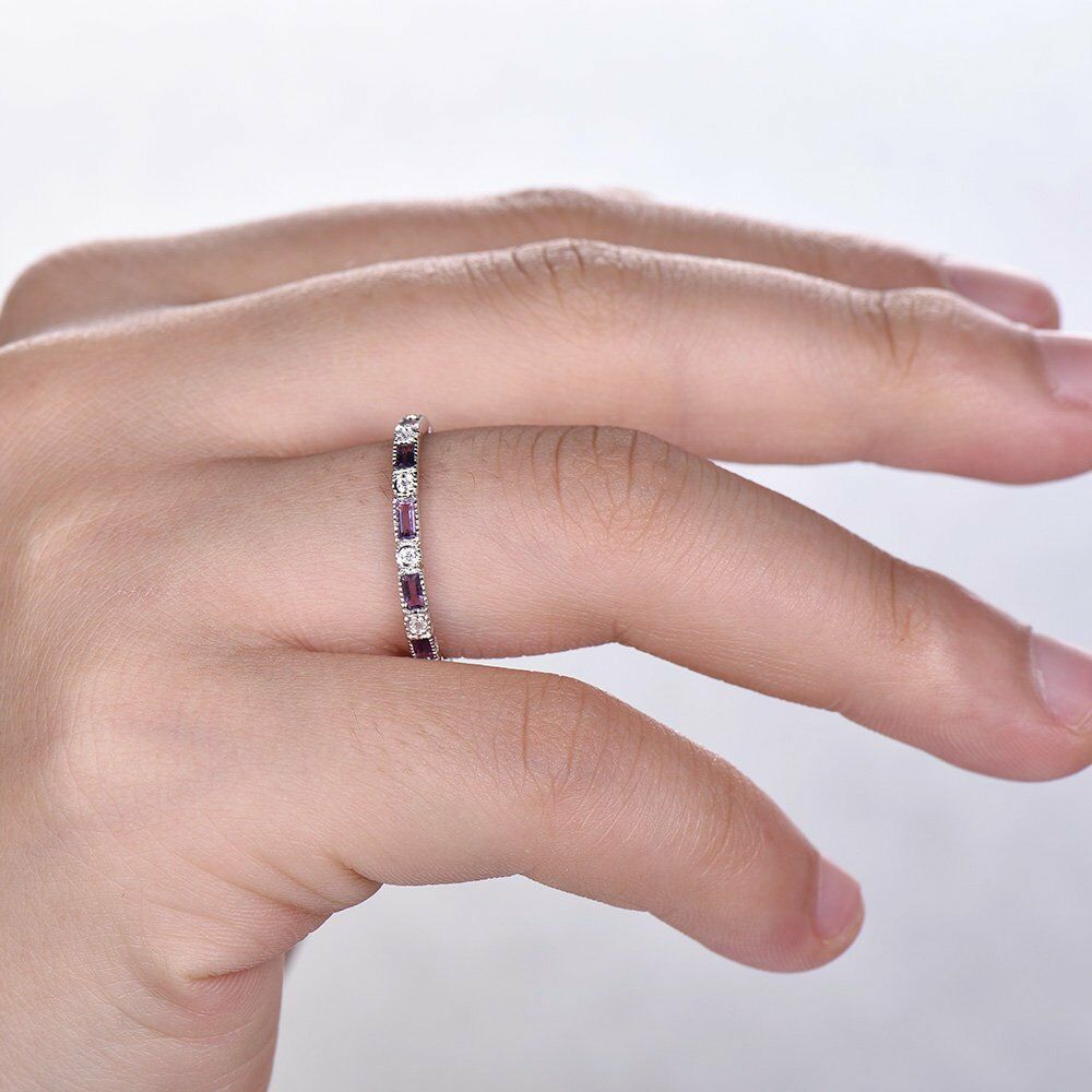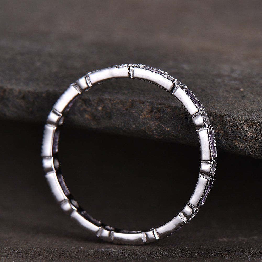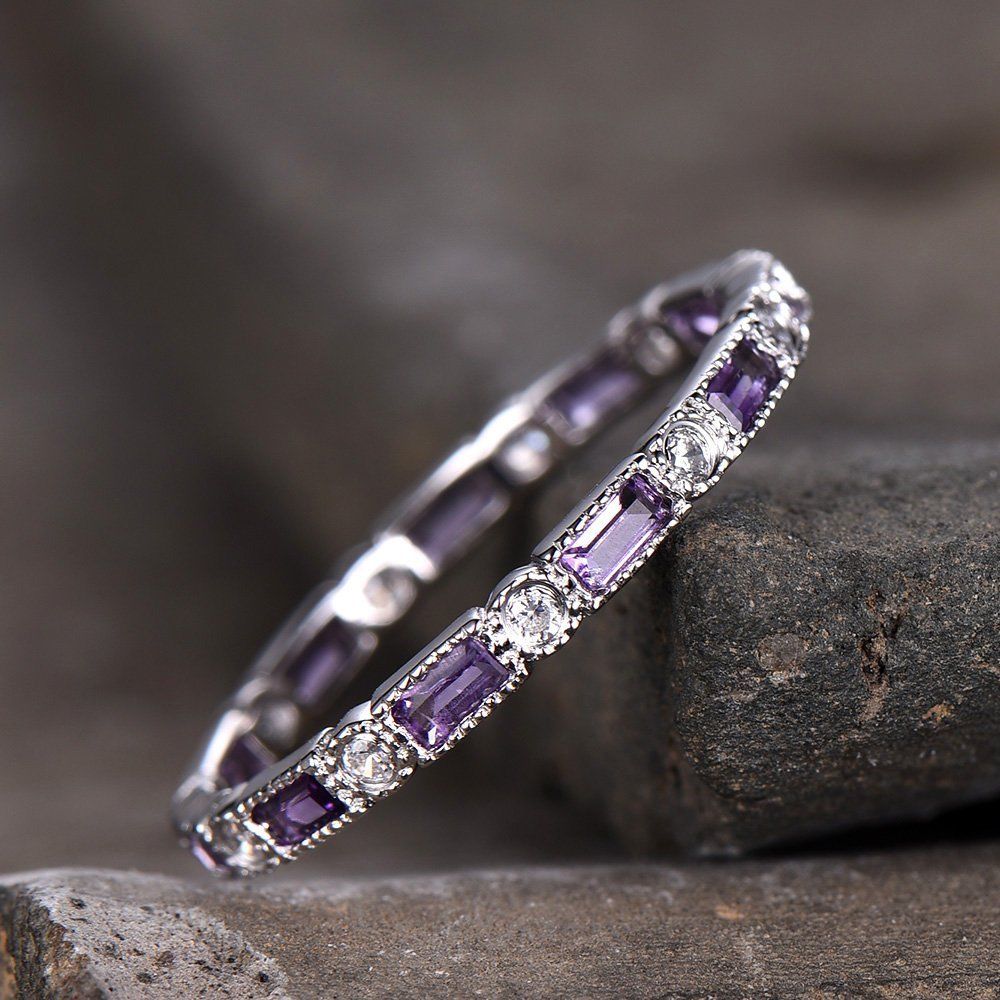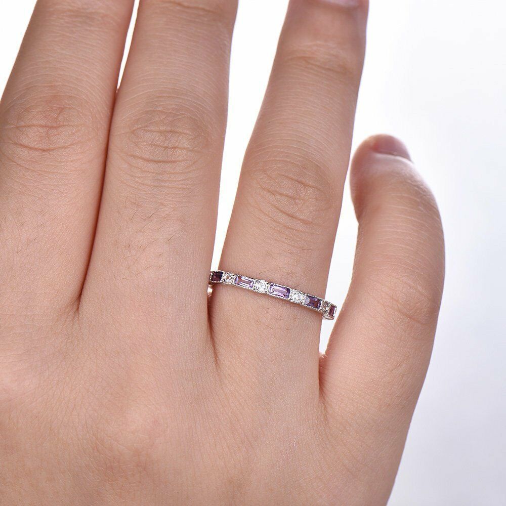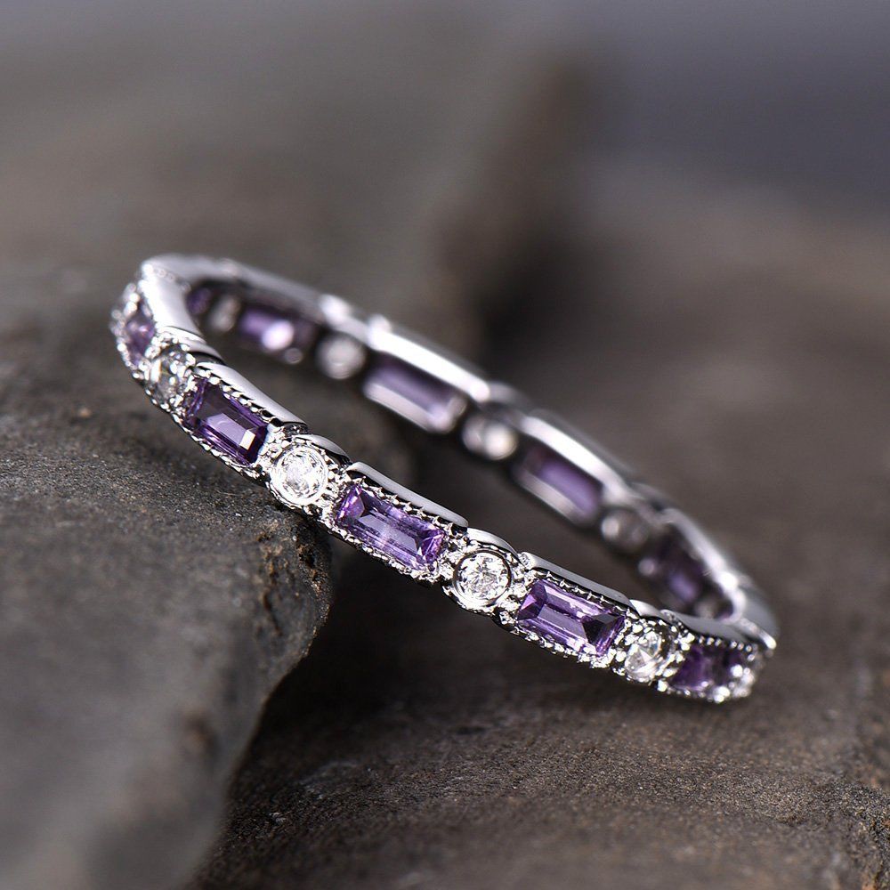1ct Baguette Cut Purple Amethyst Eternity Wedding Band Ring 14k WhiteGold Finish