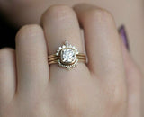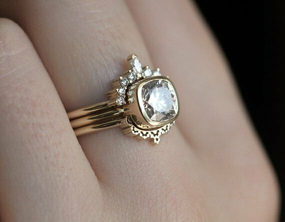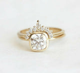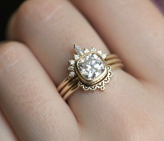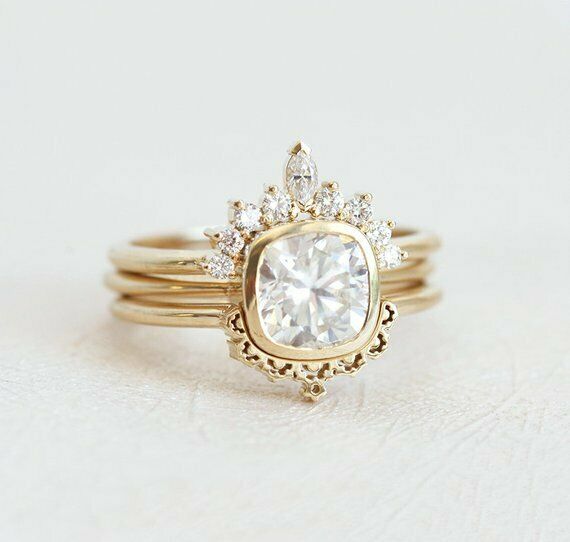 1ct Cushion Cut Diamond Engagement Ring 14k Yellow Gold Finish Unique Trio Set