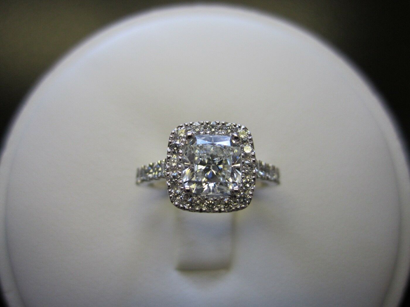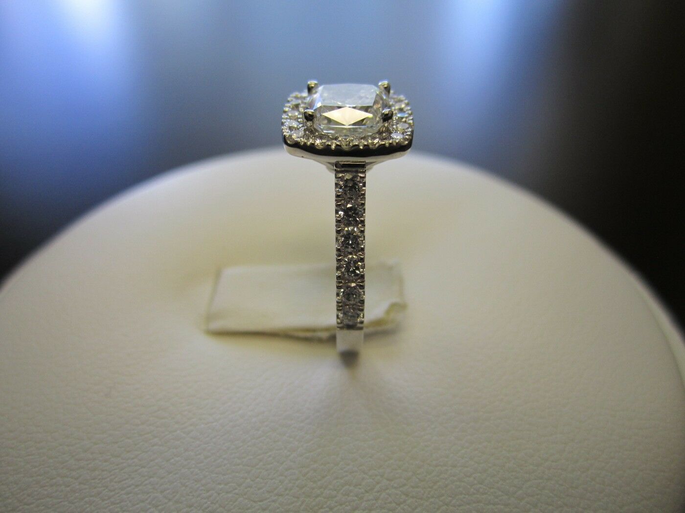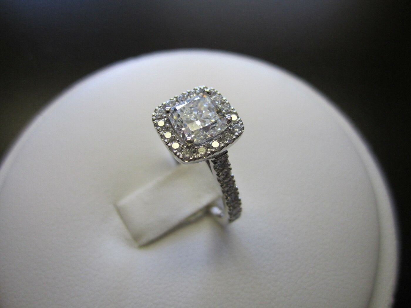 1ct Cushion Cut Diamond Pave Halo Solitaire Engagement Ring 14k WhiteGold Finish