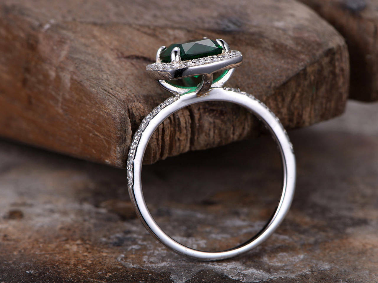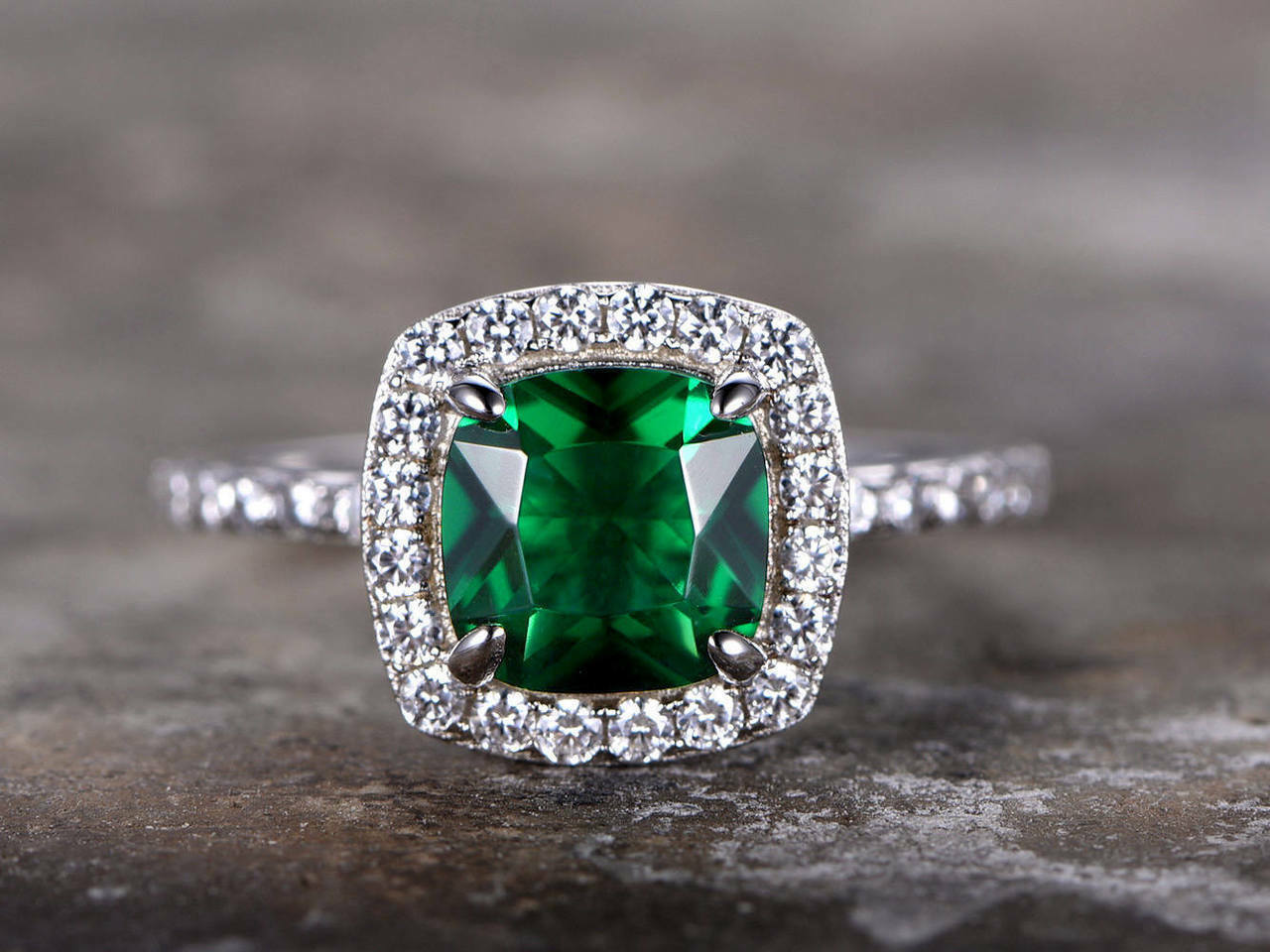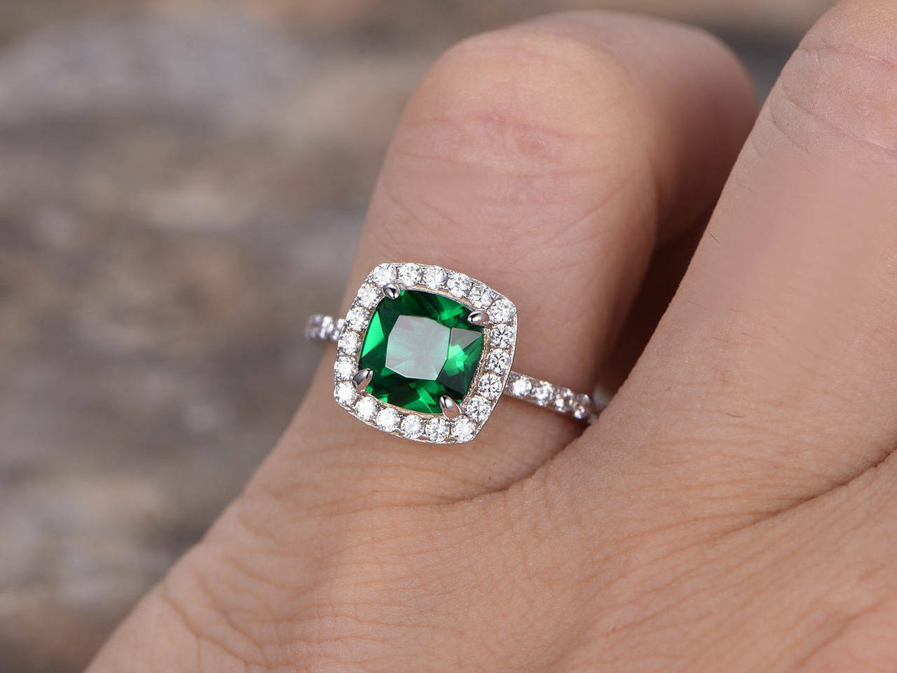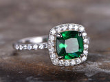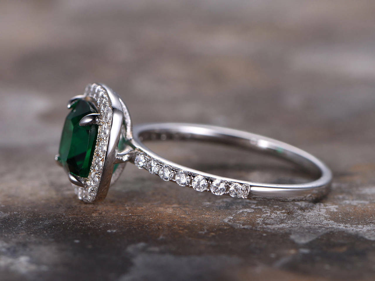 1ct Cushion Cut Green Emerald Solitaire Engagement Ring 14k White Gold Finish