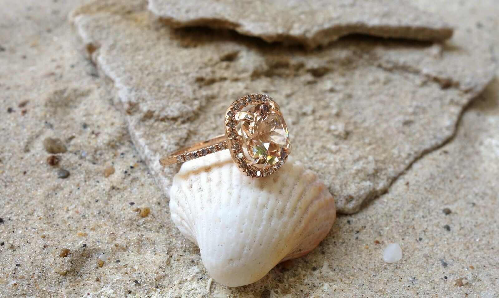 1ct Cushion Cut Peach Morganite Engagement Ring 14k Rose Gold Finish Halo Women