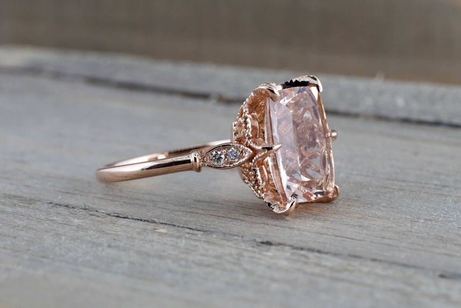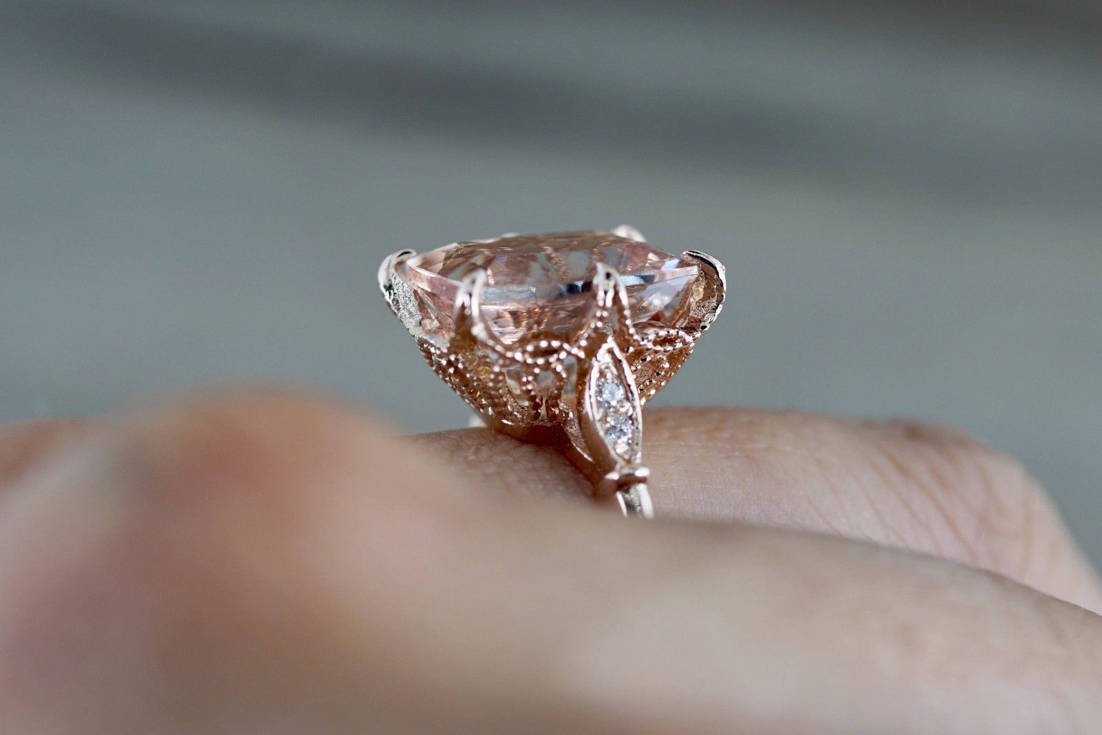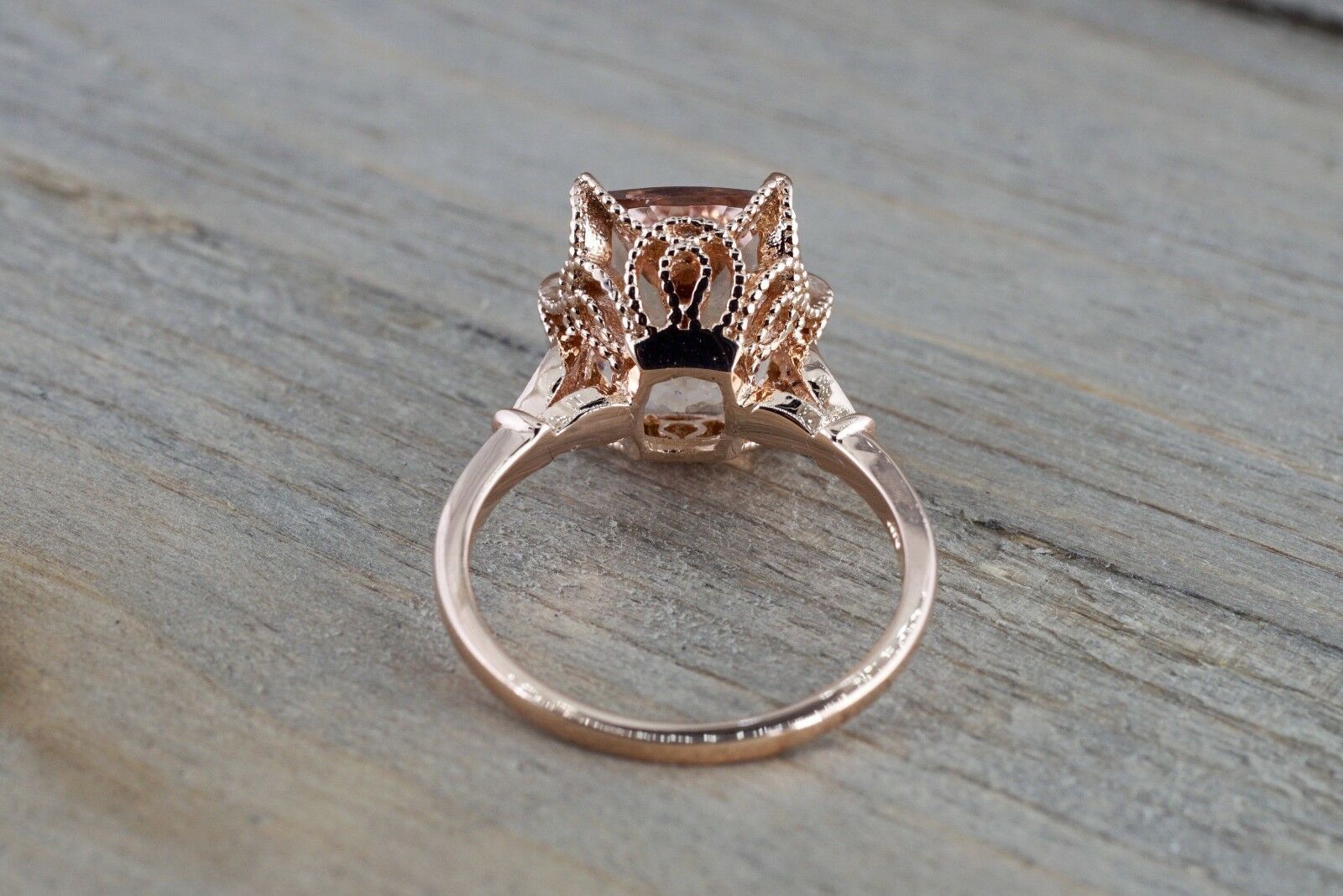 1ct Cushion Cut Peach Morganite Filigree Engagement Ring 18k Rose Gold Finish