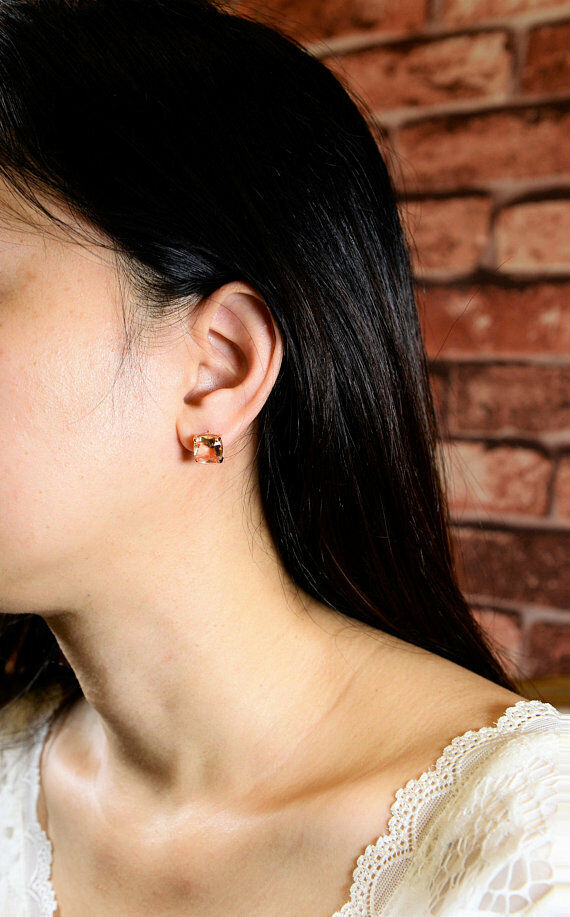 1ct Cushion Cut Peach Morganite Gorgeous Stud Earring Women 14k Rose Gold Finish