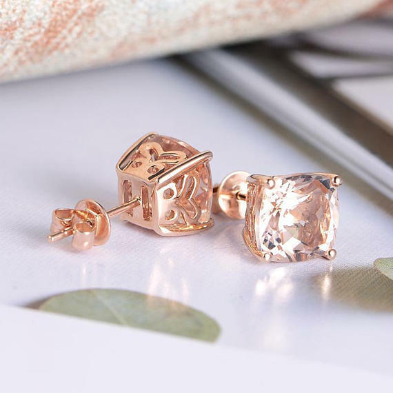 1ct Cushion Cut Peach Morganite Lovely Stud Earrings Women 14k Rose Gold Finish