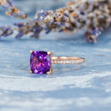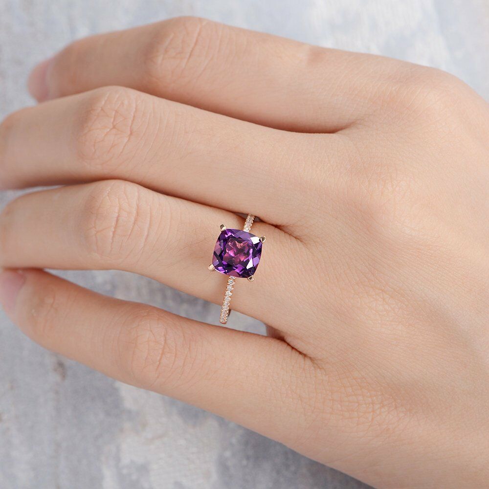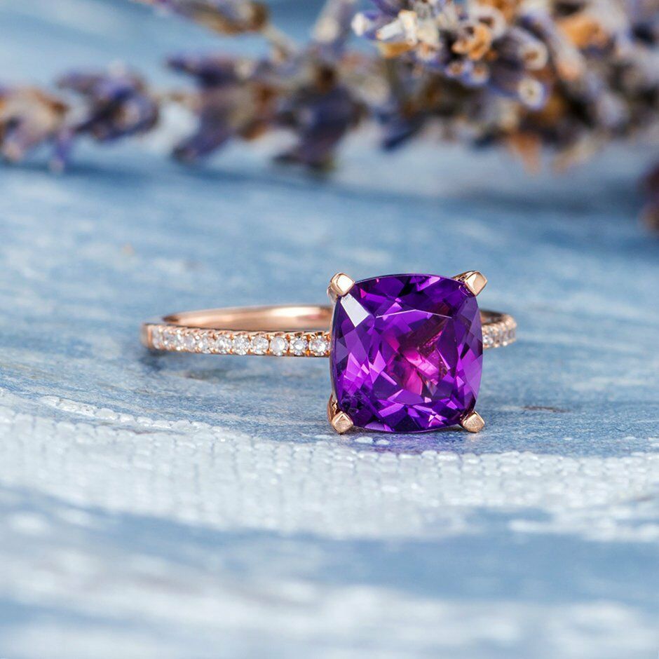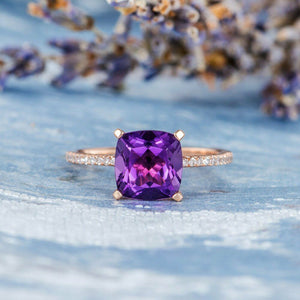 1ct Cushion Cut Purple Amethyst Solitaire Engagement Ring 14k Rose Gold Finish