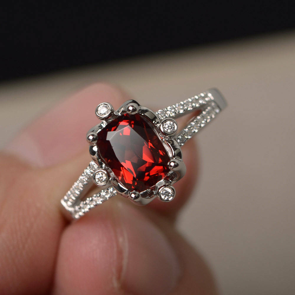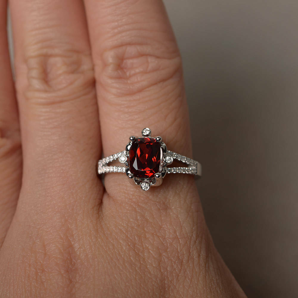 1ct Cushion Cut Red Garnet Engagement Ring 14k White Gold Finish Split Shank