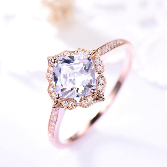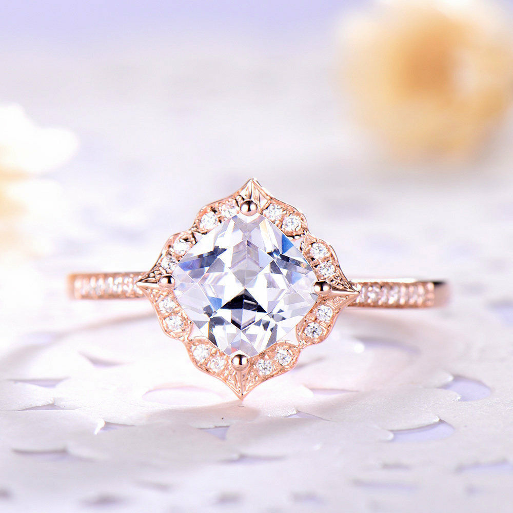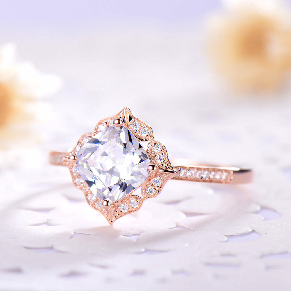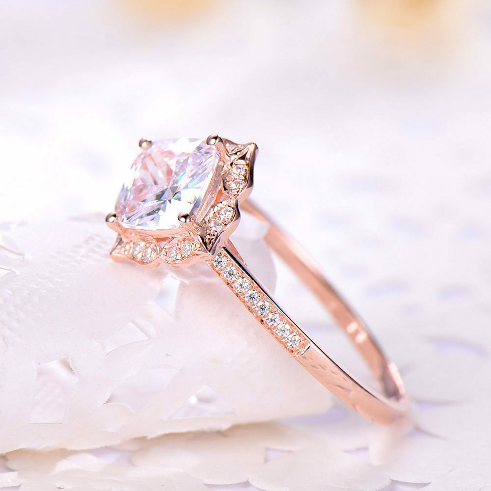 1ct Cushion Cut VVS1 Diamond Vintage Solitaire Wedding Band 14k Rose Gold Finish