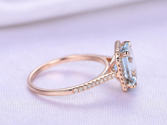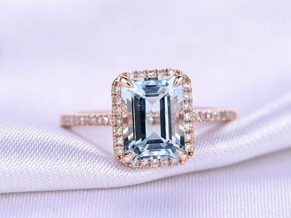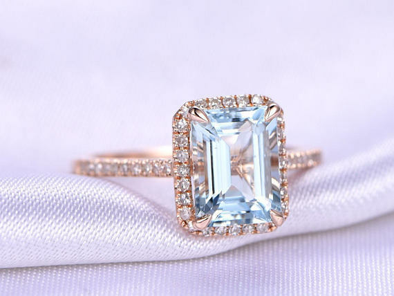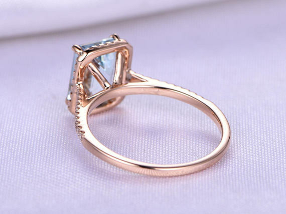 1ct Emerald Cut Aqua Blue Topaz Solitaire Engagement Ring 14k Rose Gold Finish