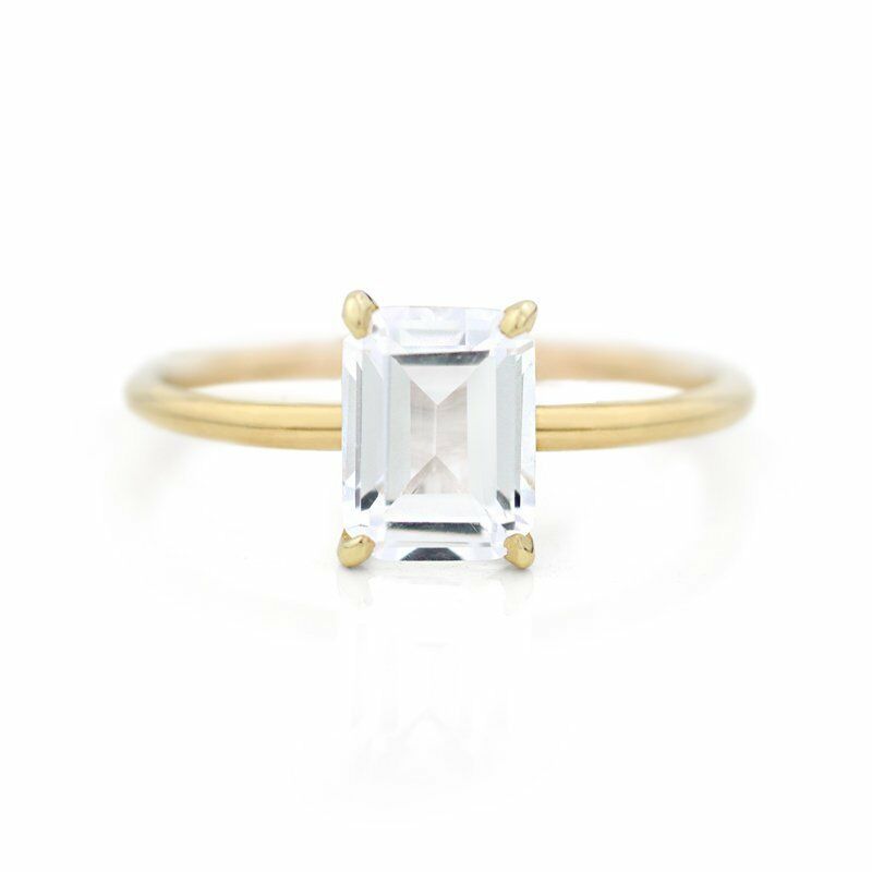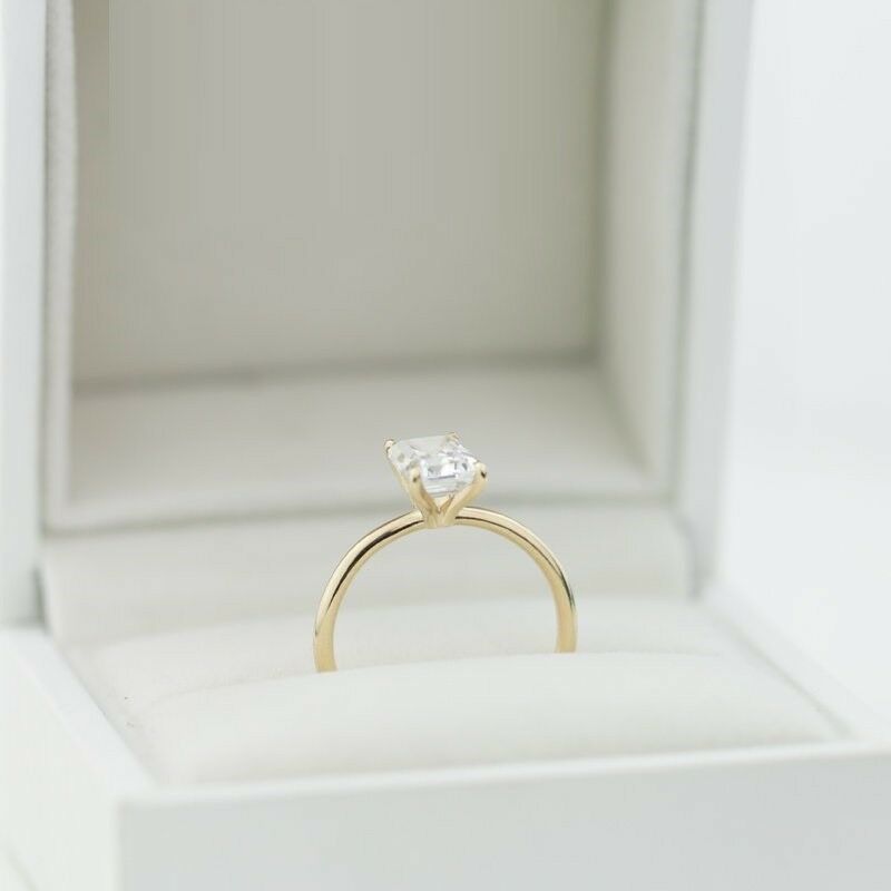 1ct Emerald Cut Diamond Classic Proposal Solitaire Ring 14k Yellow Gold Finish