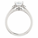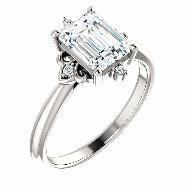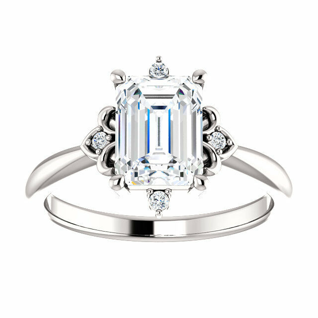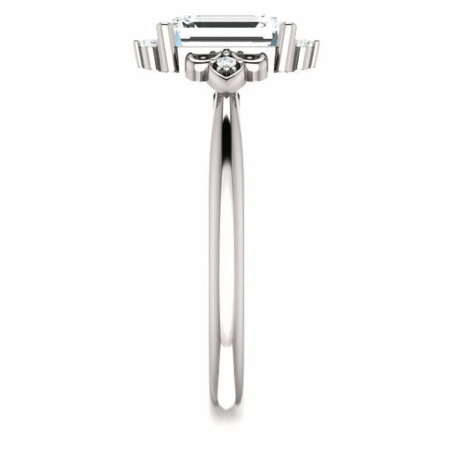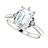 1ct Emerald Cut Diamond Designed Solitaire Engagement Ring 14k White Gold Finish