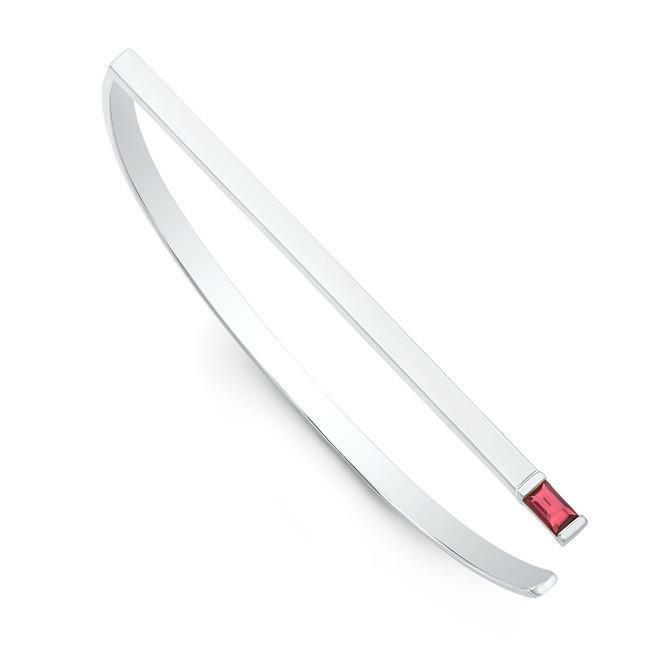 1Ct Emerald Cut Pink Ruby Elegant Minimal Open Cuff Bracelet 14K White Gold Over