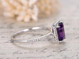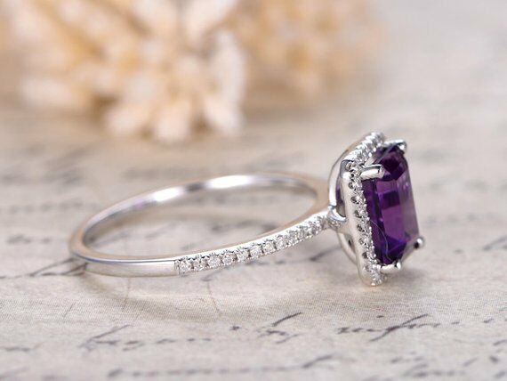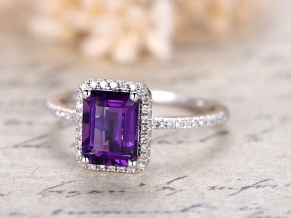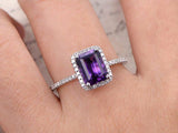 1ct Emerald Cut Purple Amethyst Solitaire Engagement Ring 14k White Gold Finish