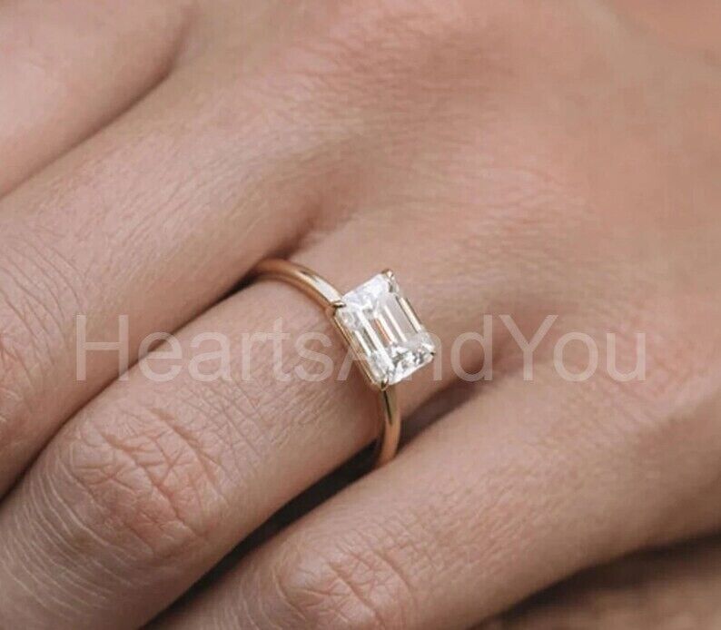 1ct Emerald Cut Simulated Diamond Solitaire Wedding Ring 14k Yellow Gold Plated