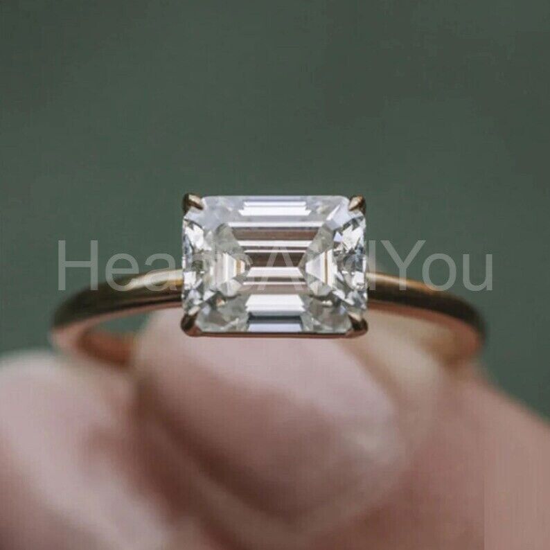 2ct Emerald Cut Simulated Diamond Solitaire Wedding Ring 14k Yellow Gold Plated