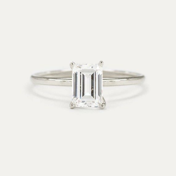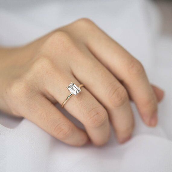 1ct Emerald Cut VVS1 D Diamond Classic Solitaire Engagement Ring 14k Gold Finish