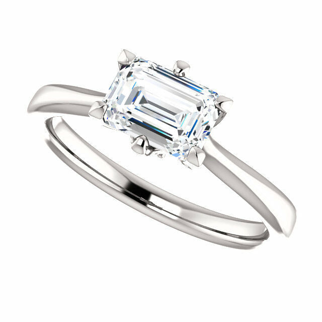 1ct Emerald Cut VVS1 D Diamond Solitaire Engagement Ring 14k White Gold Finish