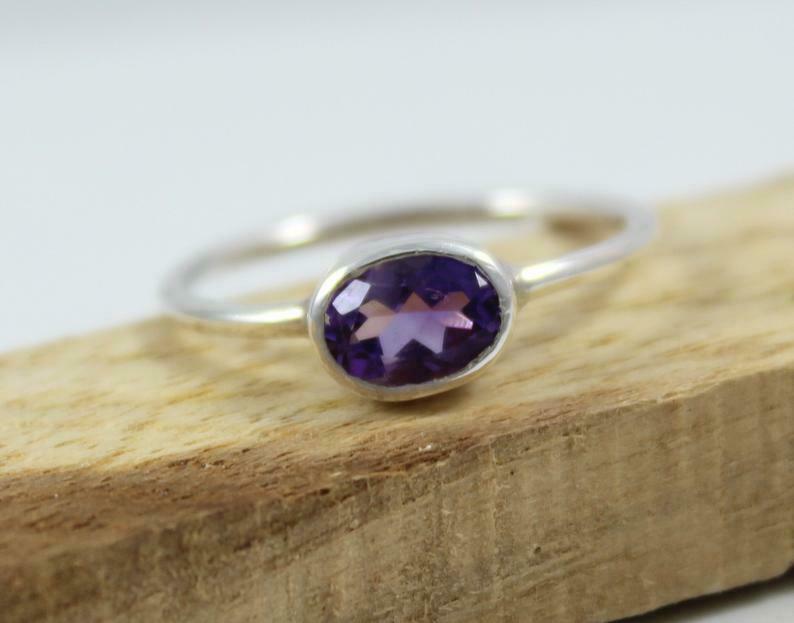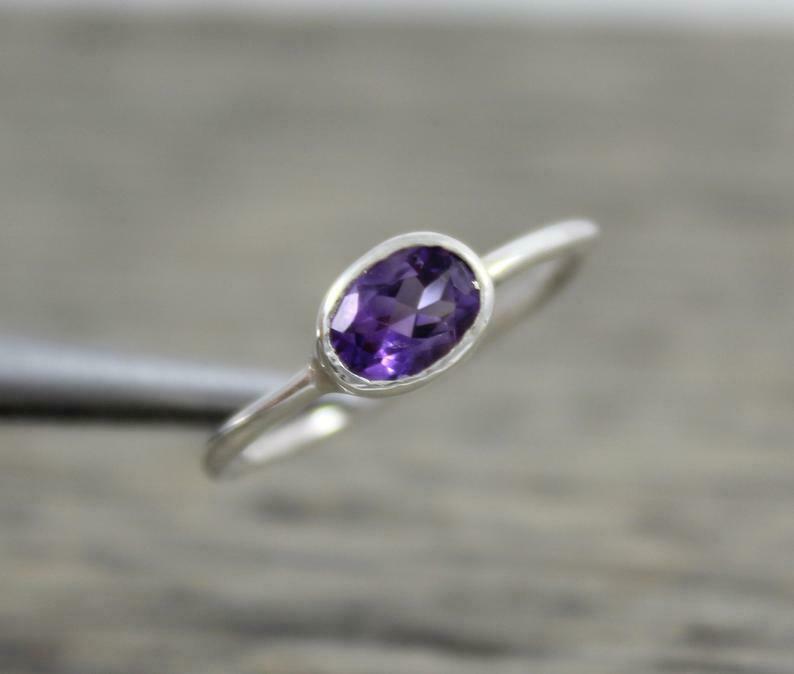 1ct Engagement Ring Oval Cut Purple Amethyst Bezel Set Solitaire 14k White Gold Finish