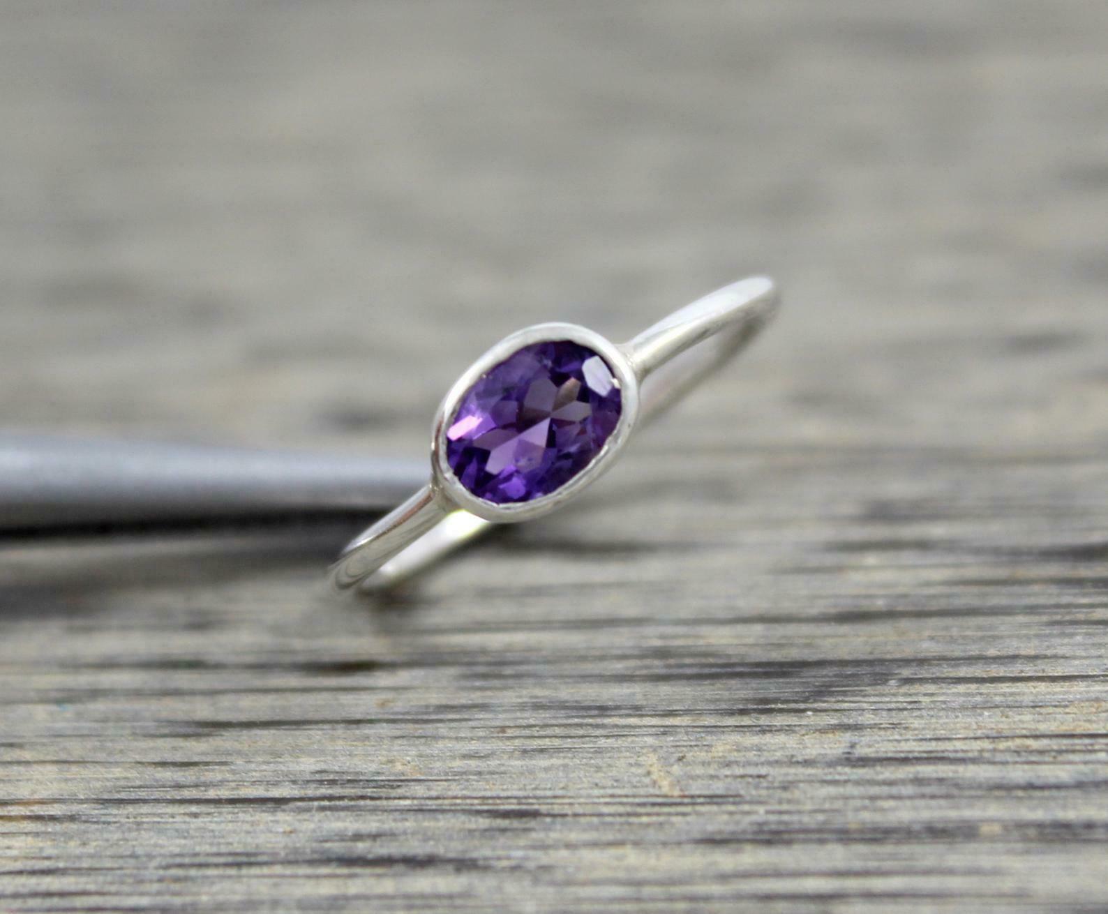 1ct Engagement Ring Oval Cut Amethyst Bezel Set Solitaire 14k White Gold Finish