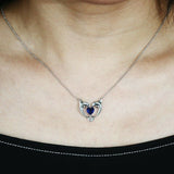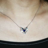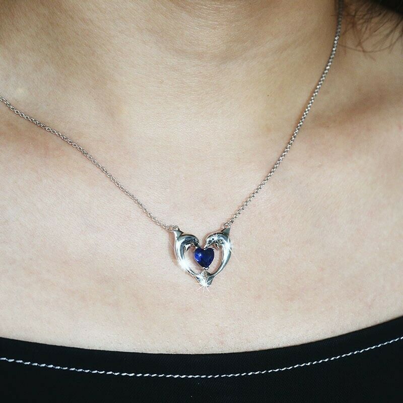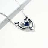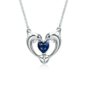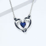 1Ct Heart Cut Blue Sapphire Dual Dolphin Love Gift Pendant 14K White Gold Finish