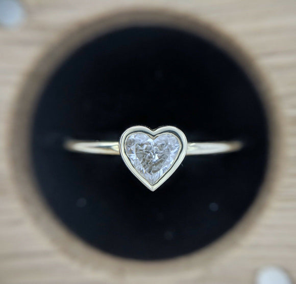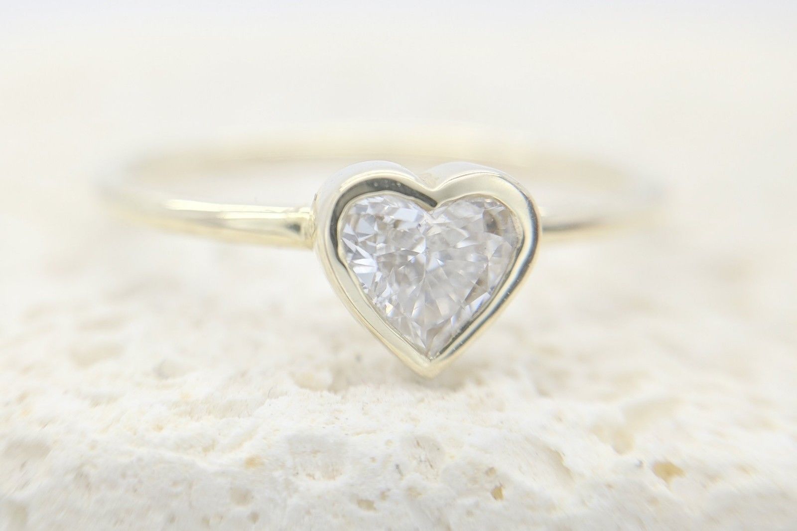1ct Heart Cut Diamond Bezel Setting Love Engagement Ring 14k White Gold Finish