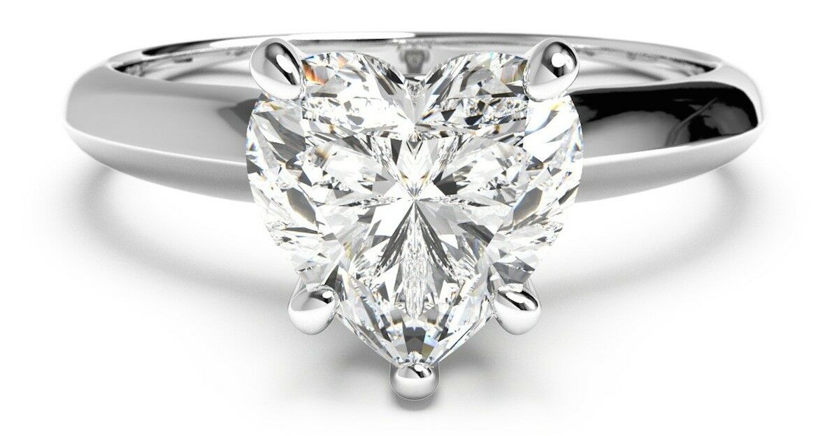 1ct Heart Cut Diamond Classic Solitaire Engagement Ring 14k White Gold Finish