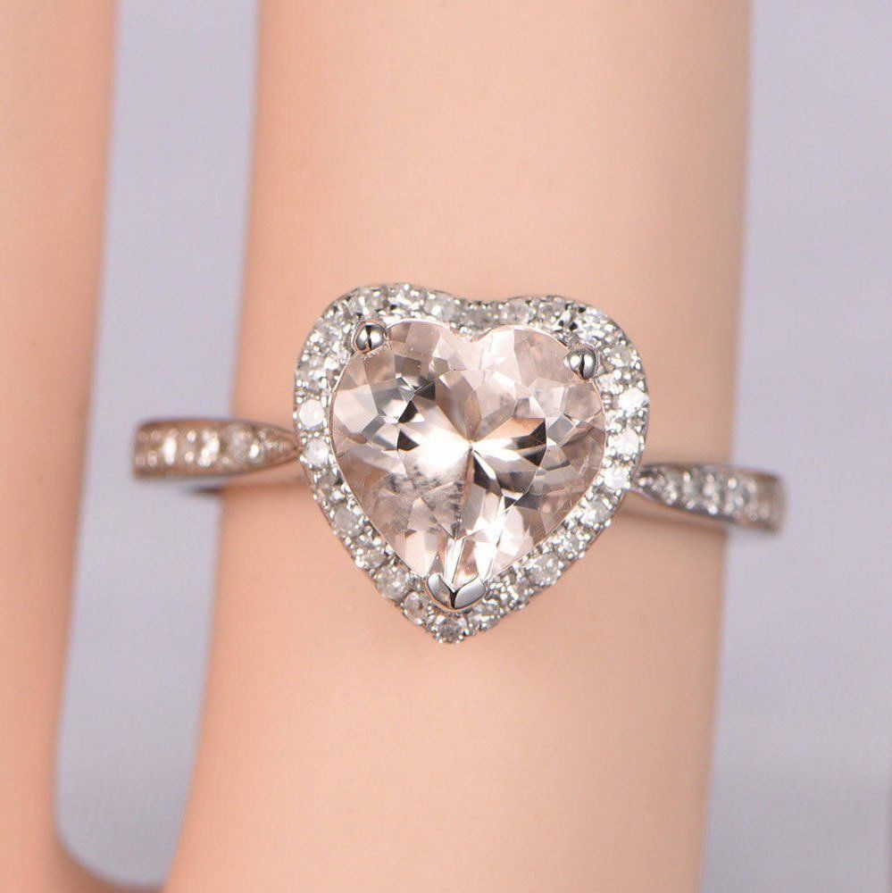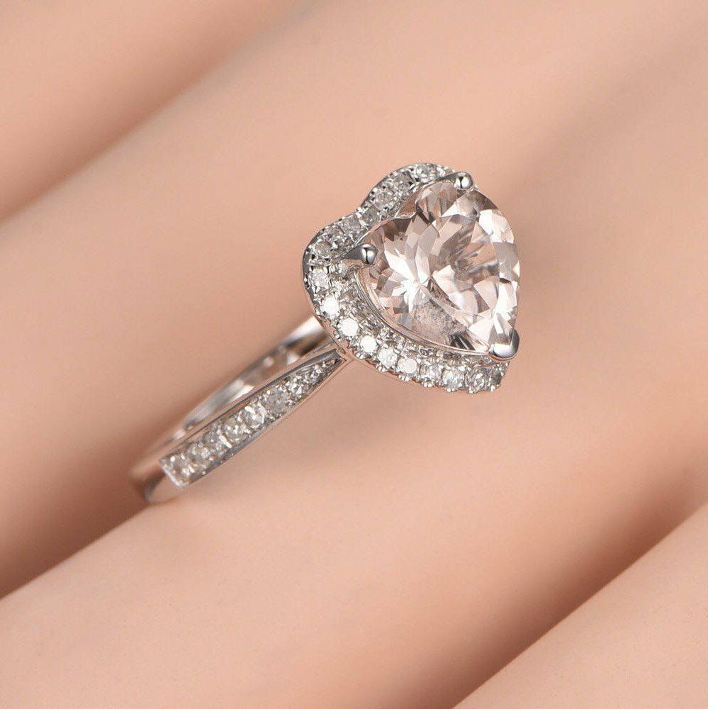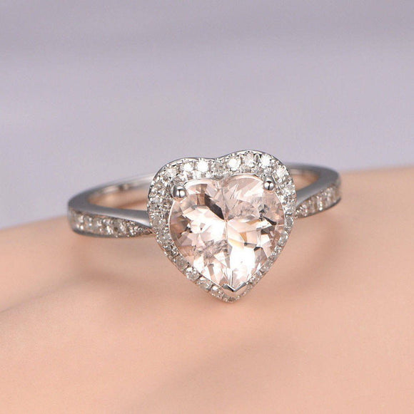 1ct Heart Cut Peach Morganite GF Proposal Engagement Ring 14k White Gold Finish