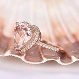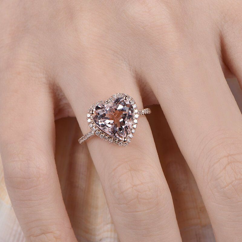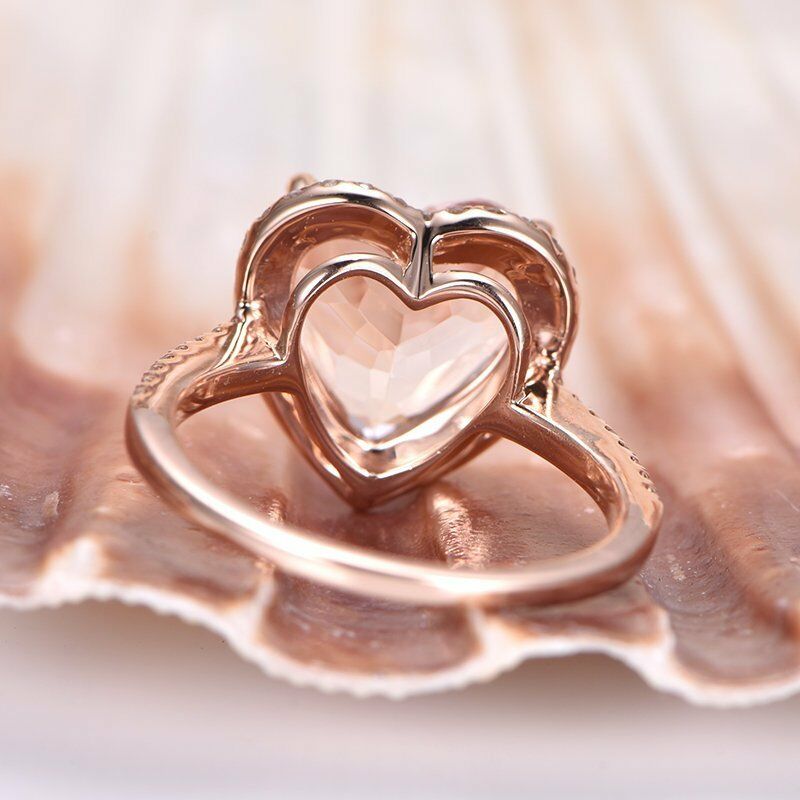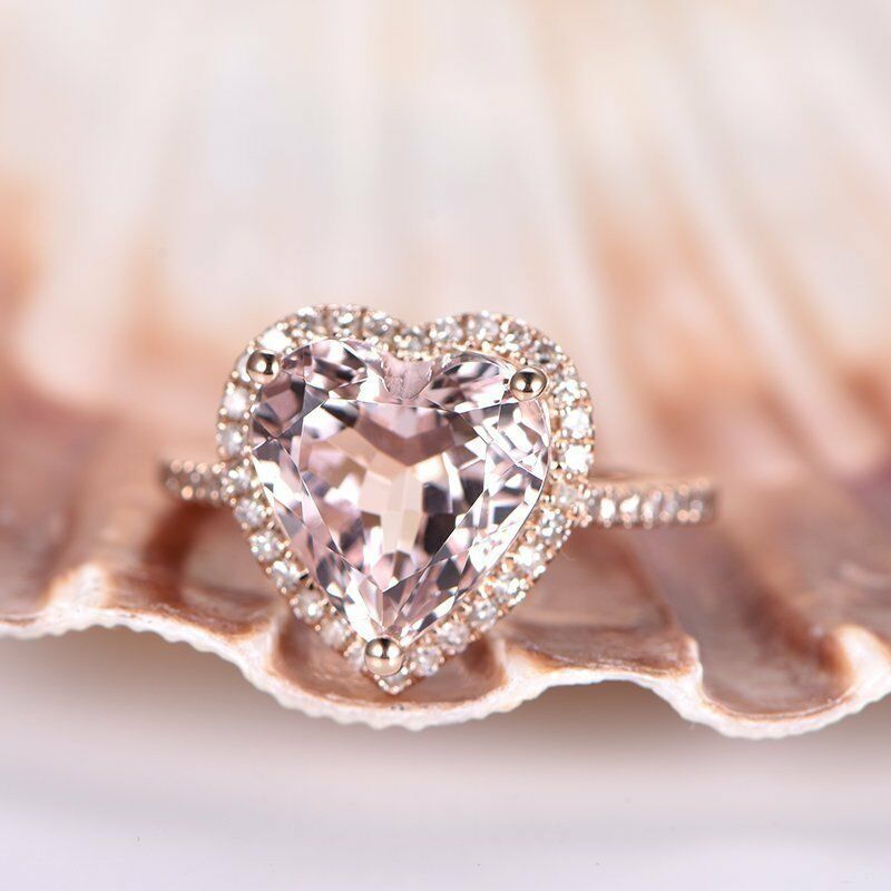 1ct Heart Cut Peach Morganite Halo Solitaire Engagement Ring 14k RoseGold Finish