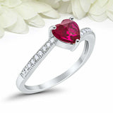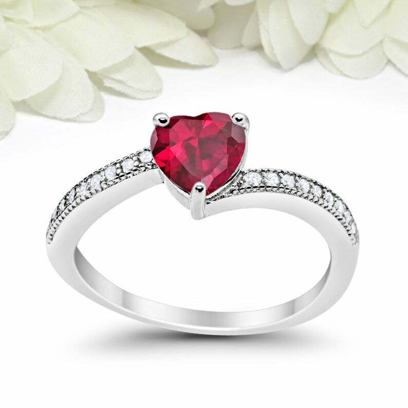 1ct Heart Cut Pink Ruby Engagement Ring Round Diamond Accent 14k White Gold Finish