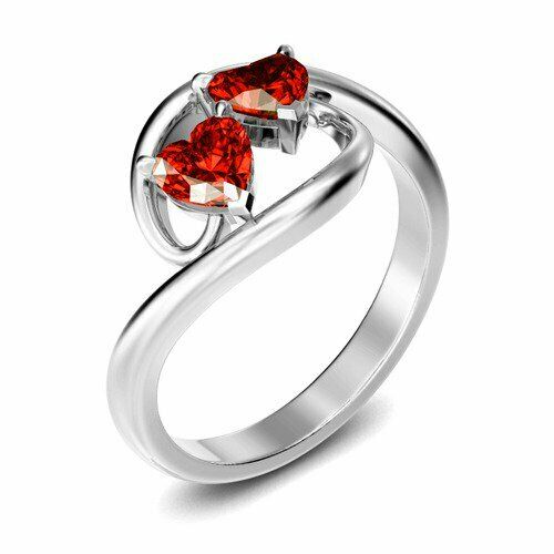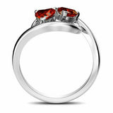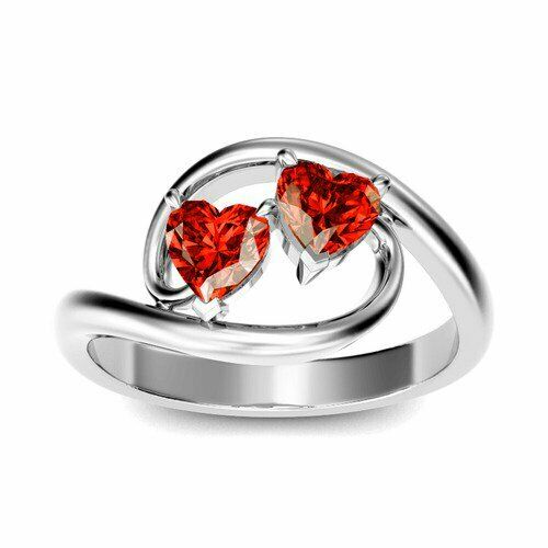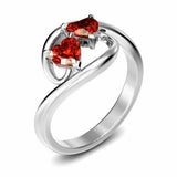1Ct Heart Cut Red Garnet Two Stone Swirl Engagement Ring 14K White Gold Finish