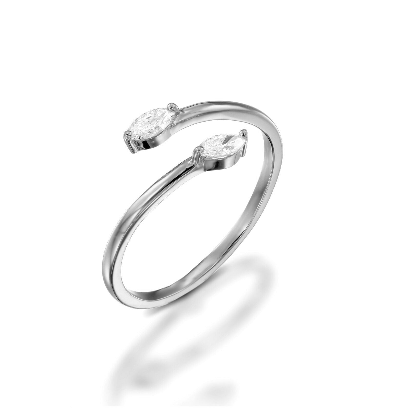 1ct Marquise Cut Diamond 2 Stone ByPass Engagement Ring 14k White Gold Finish