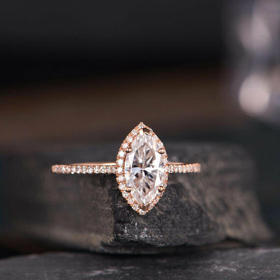1ct Marquise Cut Diamond Bridal Solitaire Engagement Ring 14k Rose Gold Finish