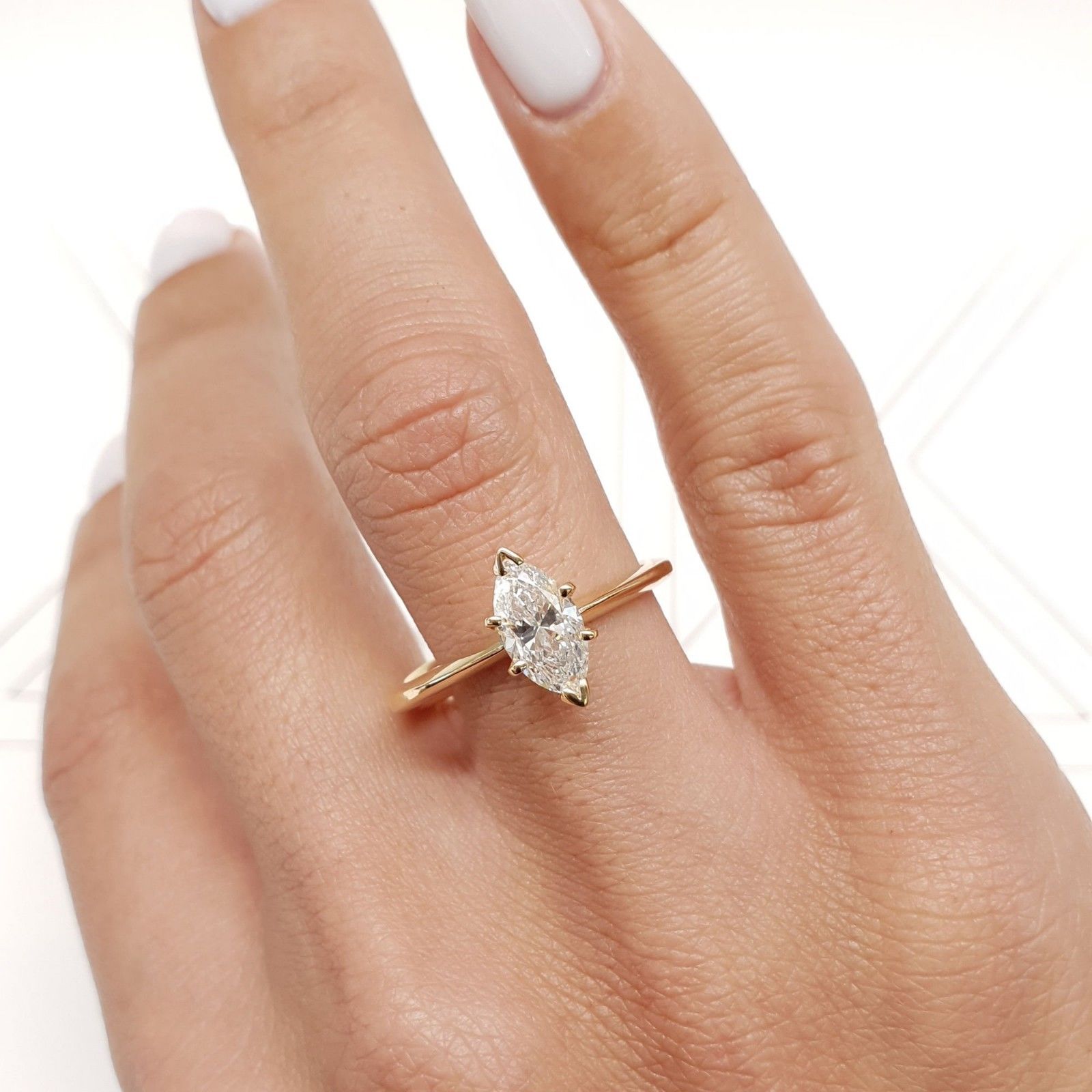 1ct Marquise Cut Diamond Classic Solitaire Engagement Ring 14k Yellow Gold Over