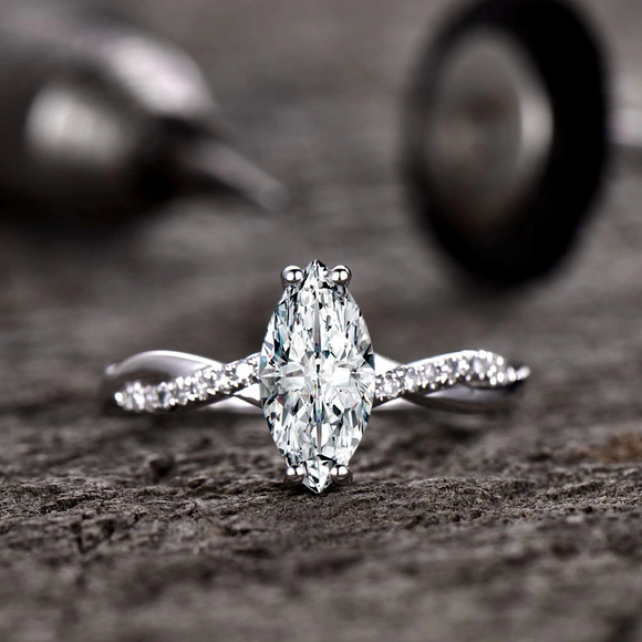 1ct Marquise Cut Diamond Engagement Ring 14k White Gold Over Infinity Twist Band