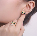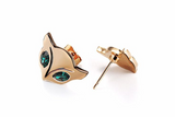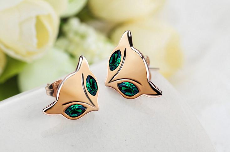 1Ct Marquise Cut Green Emerald Fox Eyes Stud Earrings Women 14K Rose Gold Finish