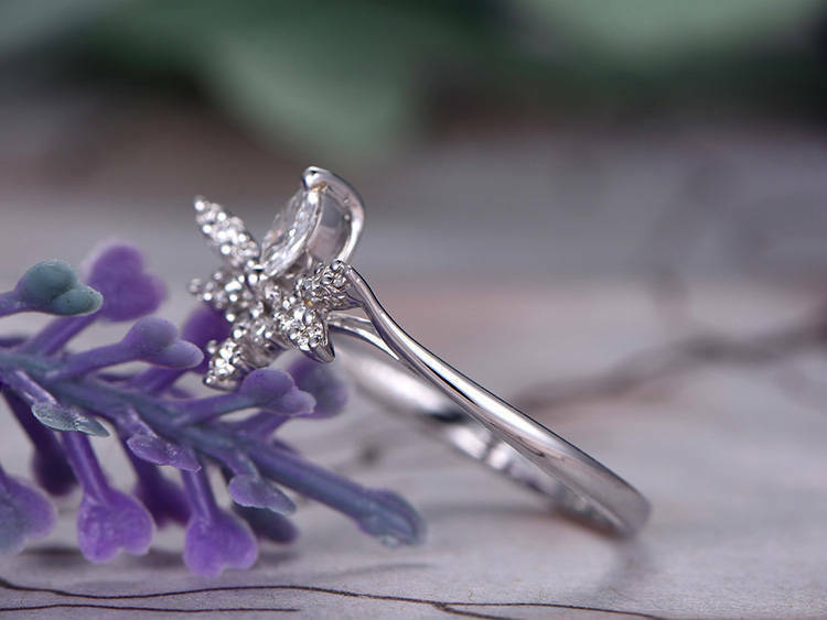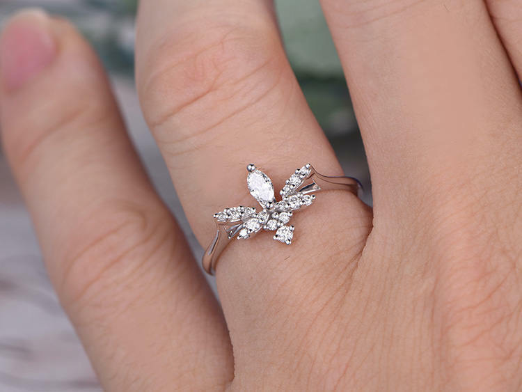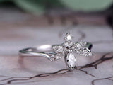 1ct Marquise Cut VVS1 D Diamond DragonFly Engagement Ring 14k White Gold Finish