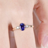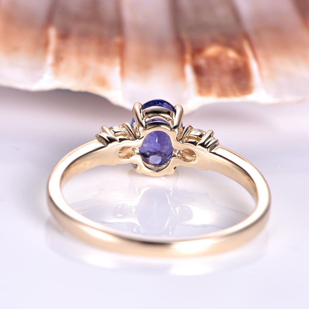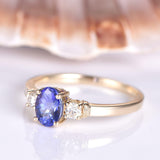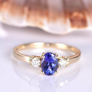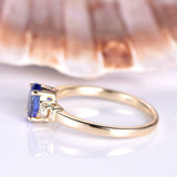1ct Oval Cut Blue Sapphire 3 Stone Solitaire Engagement Ring 14k RoseGold Finish