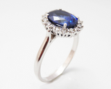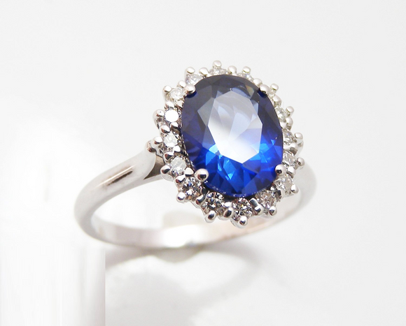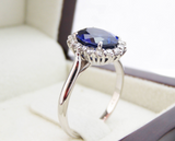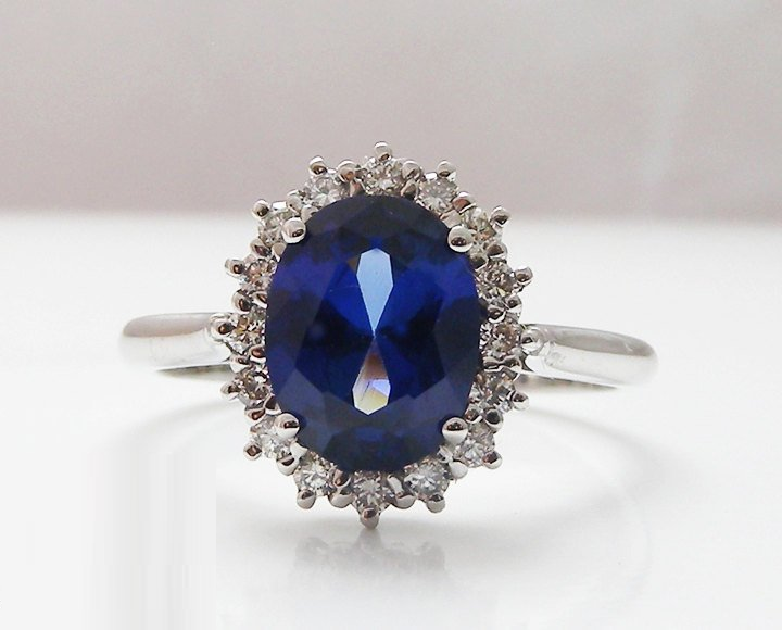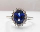 1ct Oval Cut Blue Sapphire Engagement Ring 14k White Gold Finish Floral Diana
