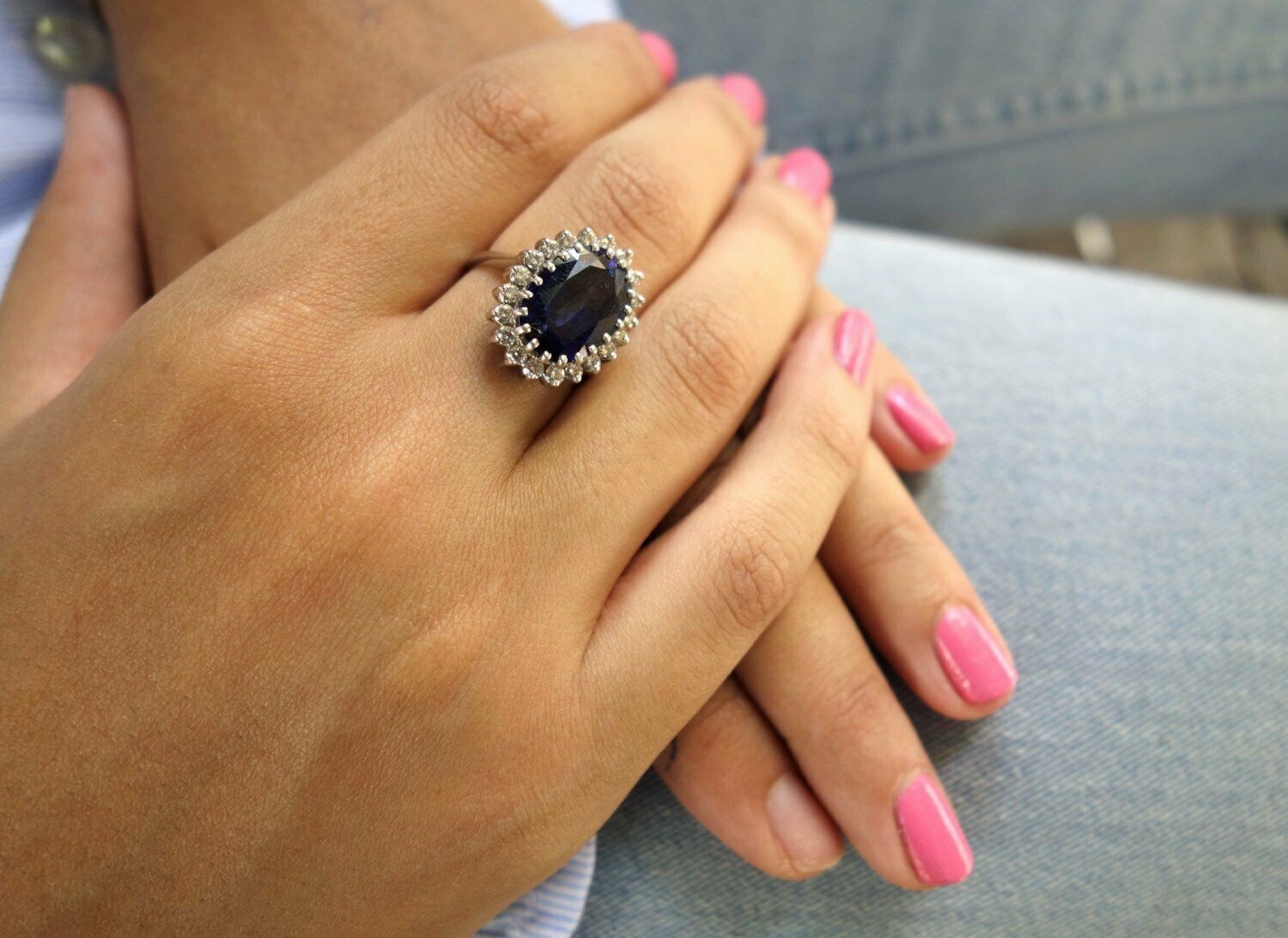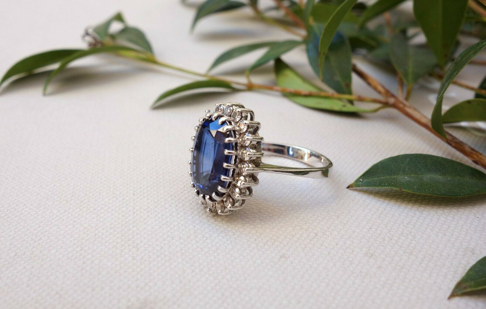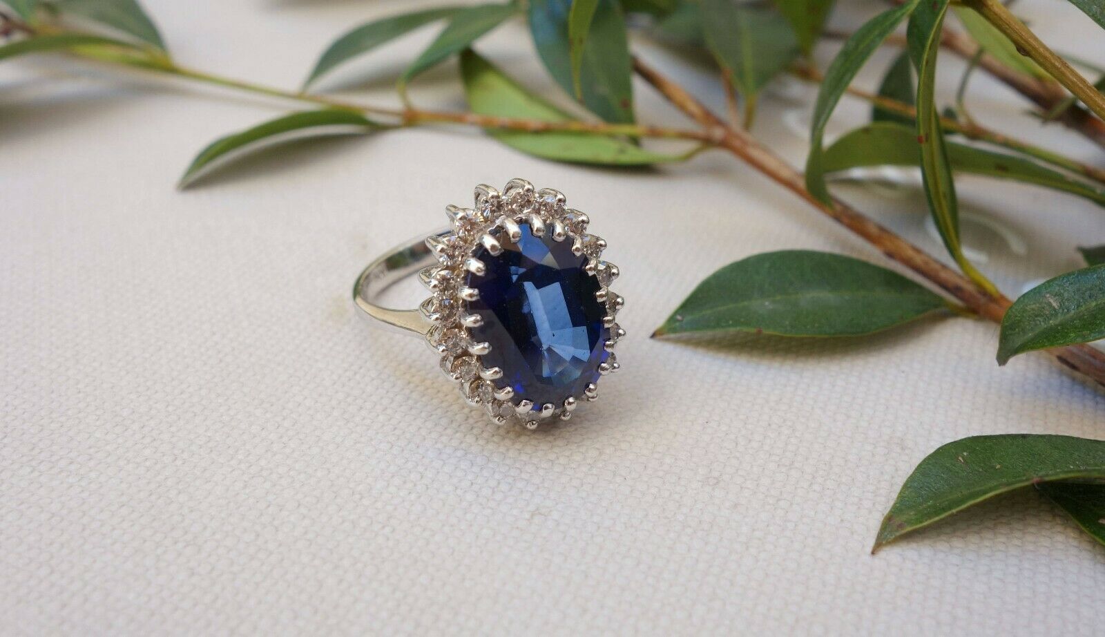 1ct Oval Cut Blue Sapphire Engagement Ring 14k White Gold Finish Halo Solitaire