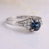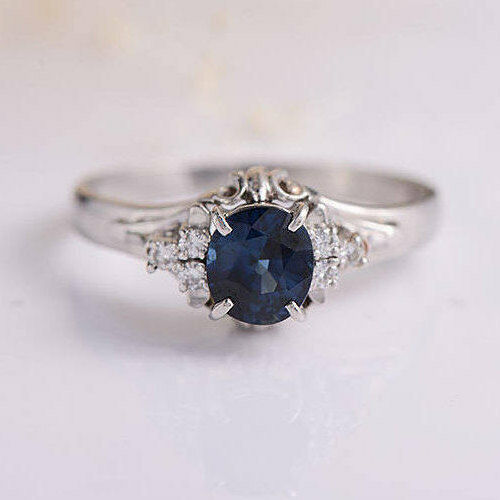 1ct Oval Cut Blue Sapphire Engagement Ring 14k WhiteGold Finish Art Deco Promise