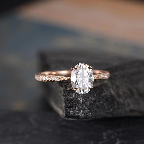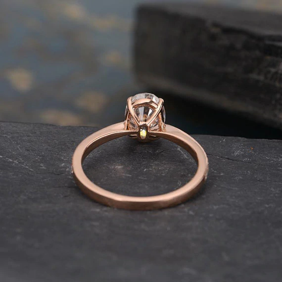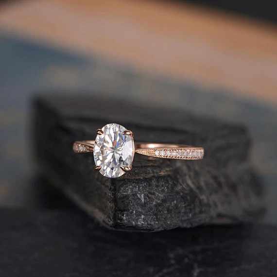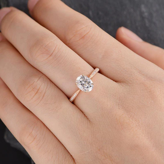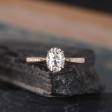 1ct Oval Cut Diamond Engagement Ring 14k Rose Gold Finish Half Eternity Promise