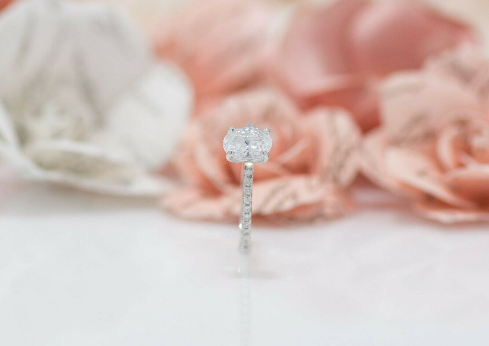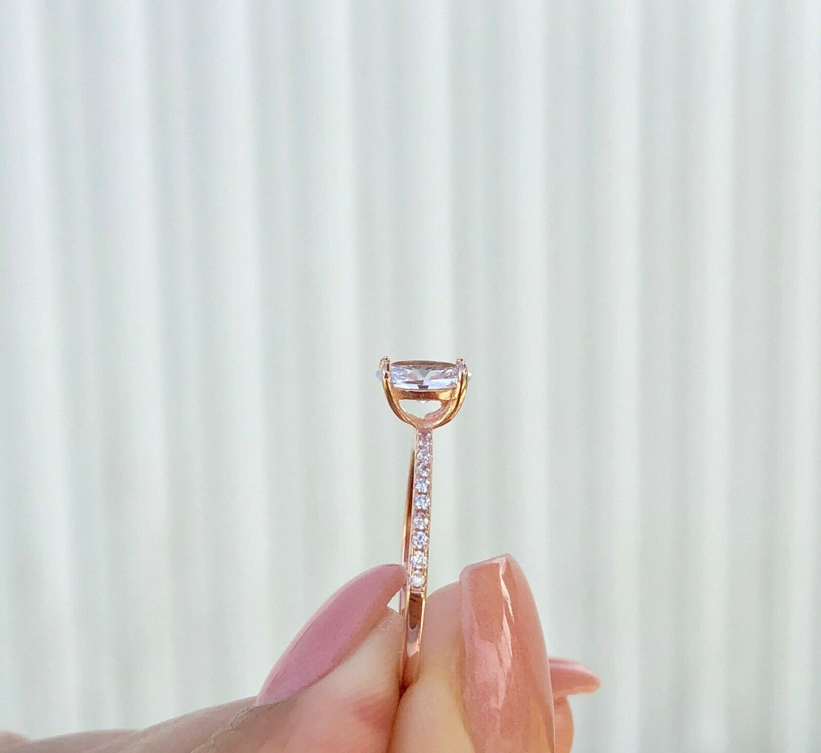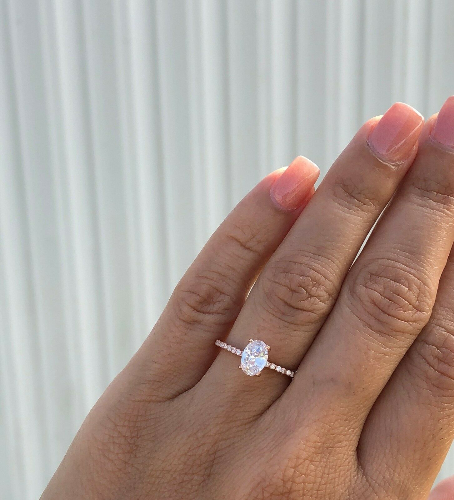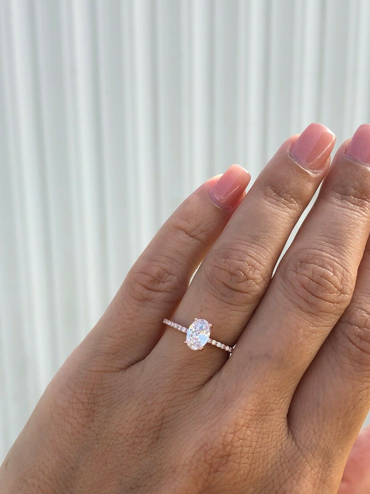 1Ct Oval Cut DVVS1 Diamond Petite Solitaire Engagement Ring 14K Rose Gold Finish