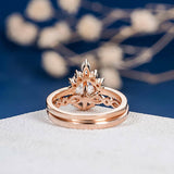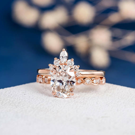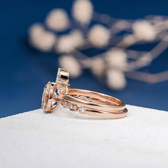 1ct Oval Cut Morganite Crown Bridal Set Engagement Ring Band 14k RoseGold Finish