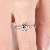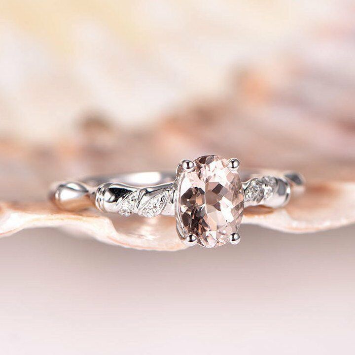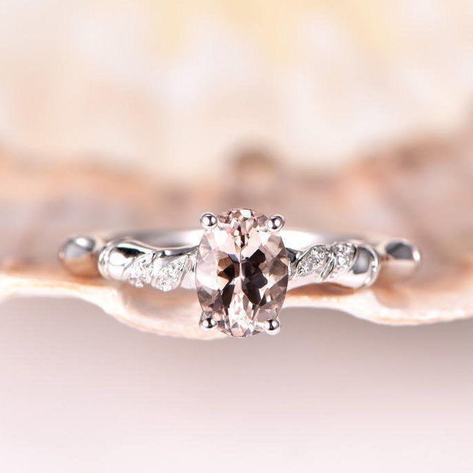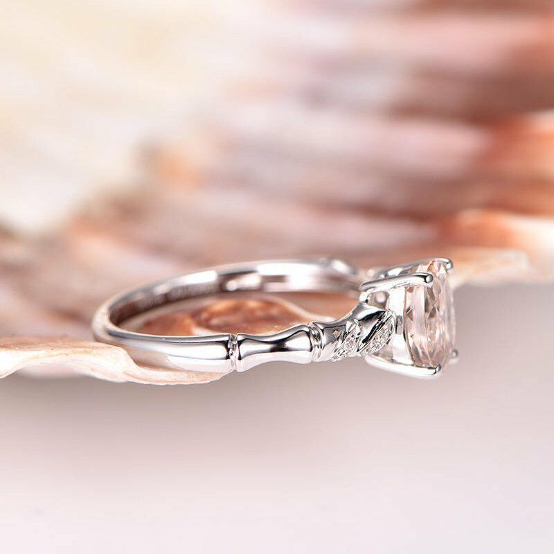 1ct Oval Cut Peach Morganite Bamboo Design Engagement Ring 18k White Gold Finish