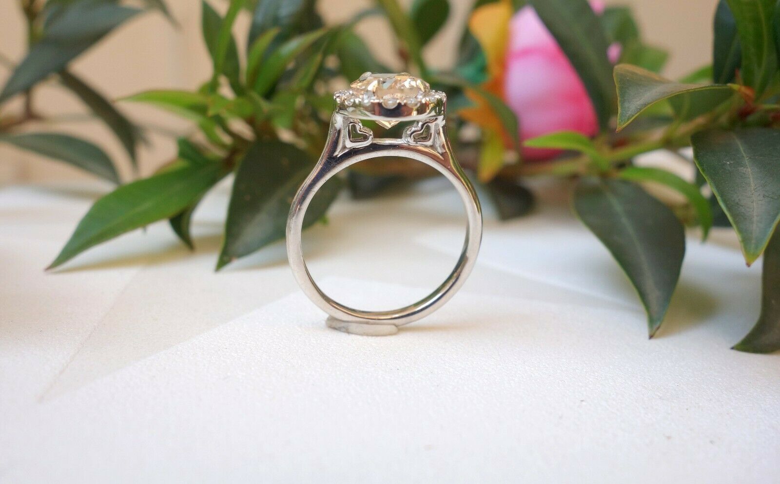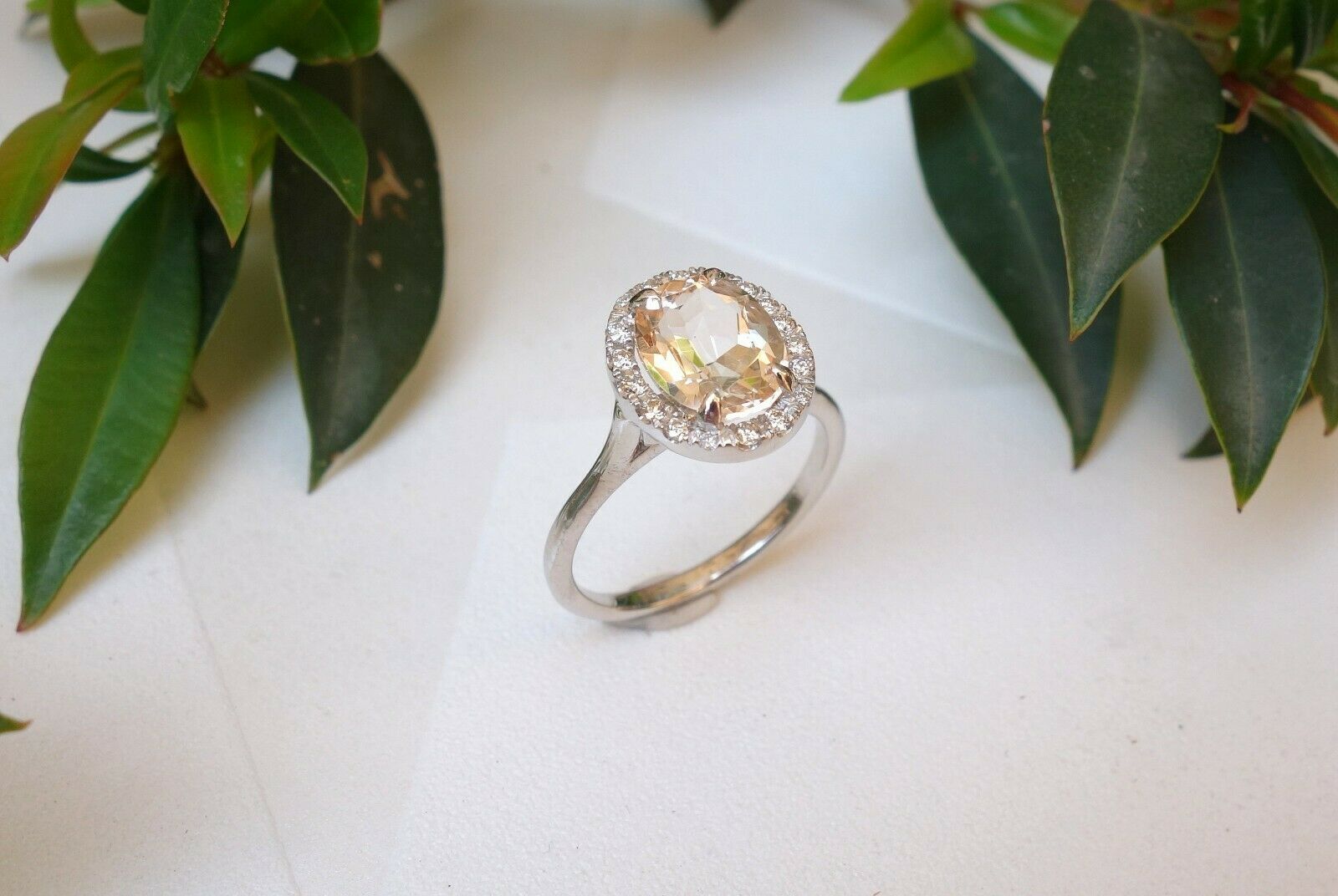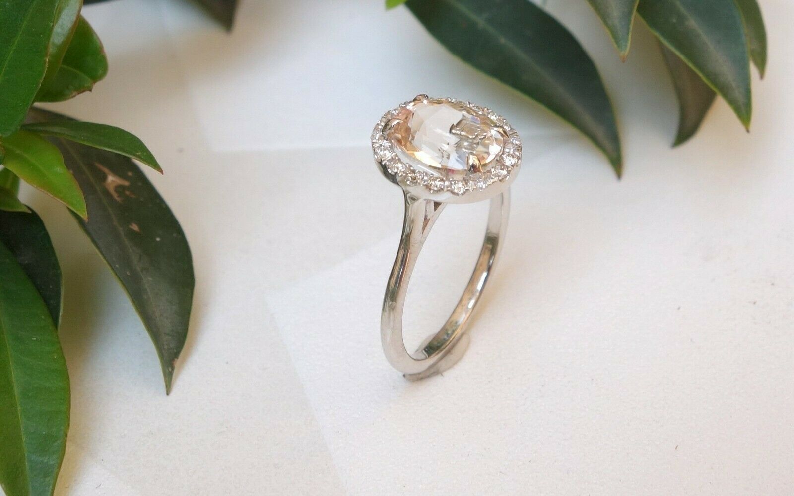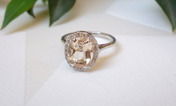1ct Oval Cut Peach Morganite Engagement Ring 14k White Gold Finish Halo Promise