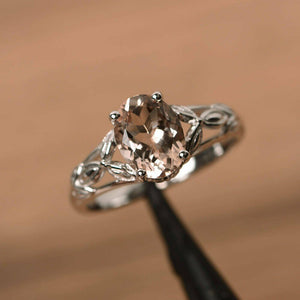 1ct Oval Cut Peach Morganite Fancy Engagement Ring 14k White Gold Finish