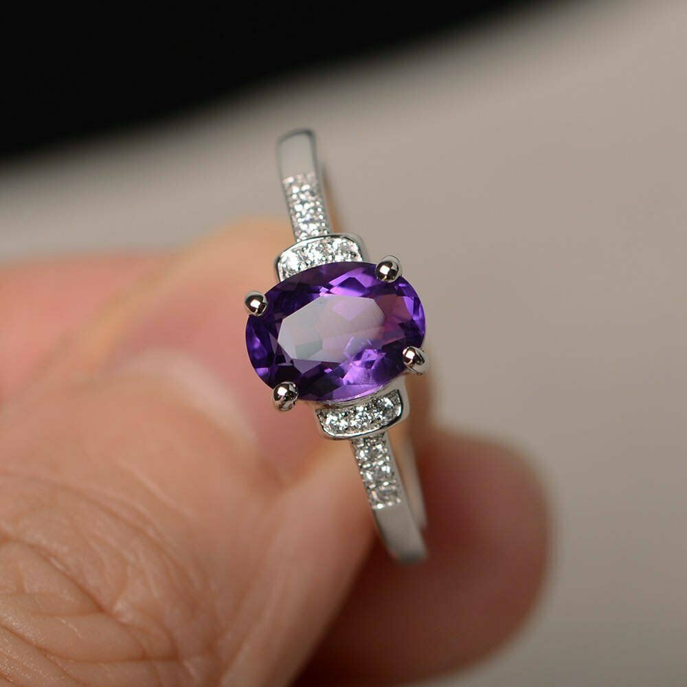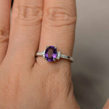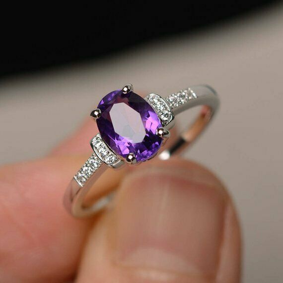 1ct Oval Cut Purple Amethyst Engagement Ring 14k WhiteGold Over Accent Solitaire