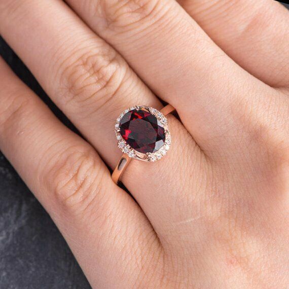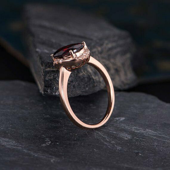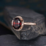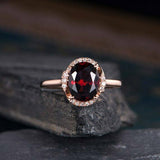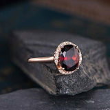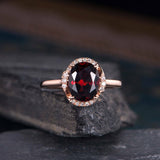 1ct Oval Cut Red Garnet Engagement Ring 14k Rose Gold Finish Halo Unique Promise