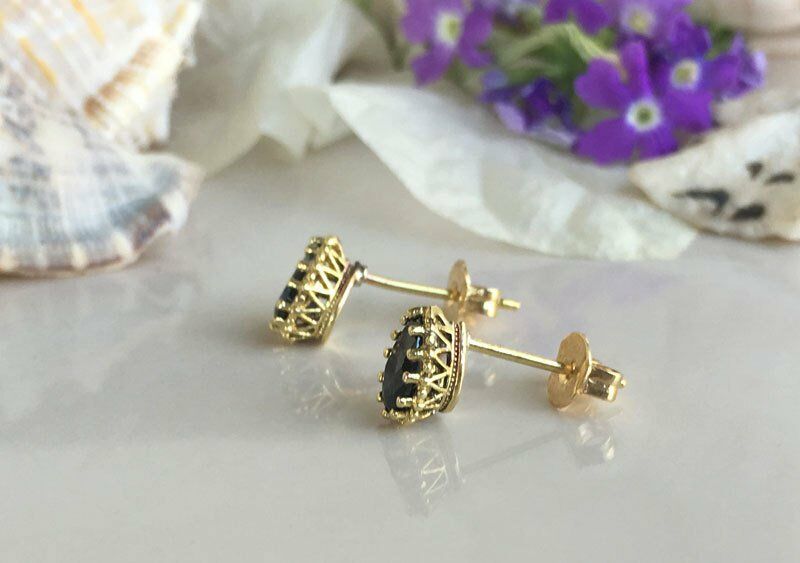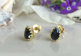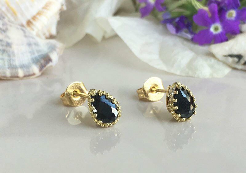 1ct Pear Cut Black Diamond Crown Teardrop Stud Earrings 14k Yellow Gold Finish