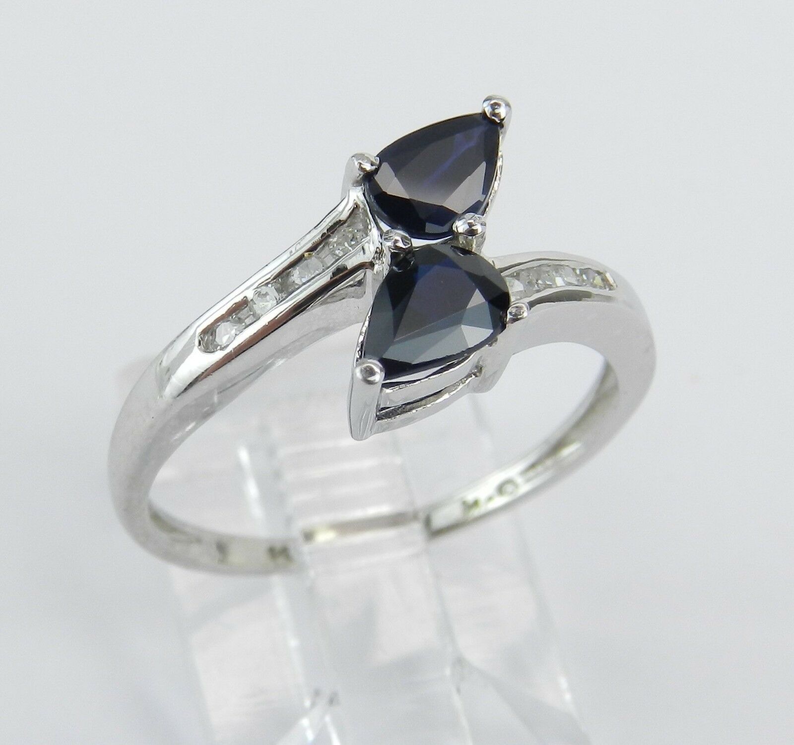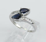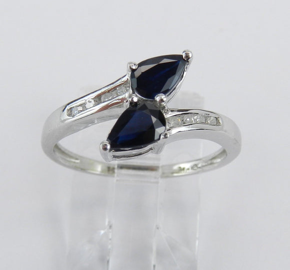 1ct Pear Cut Blue Sapphire ByPass 2 Stone Engagement Ring 14k White Gold Finish